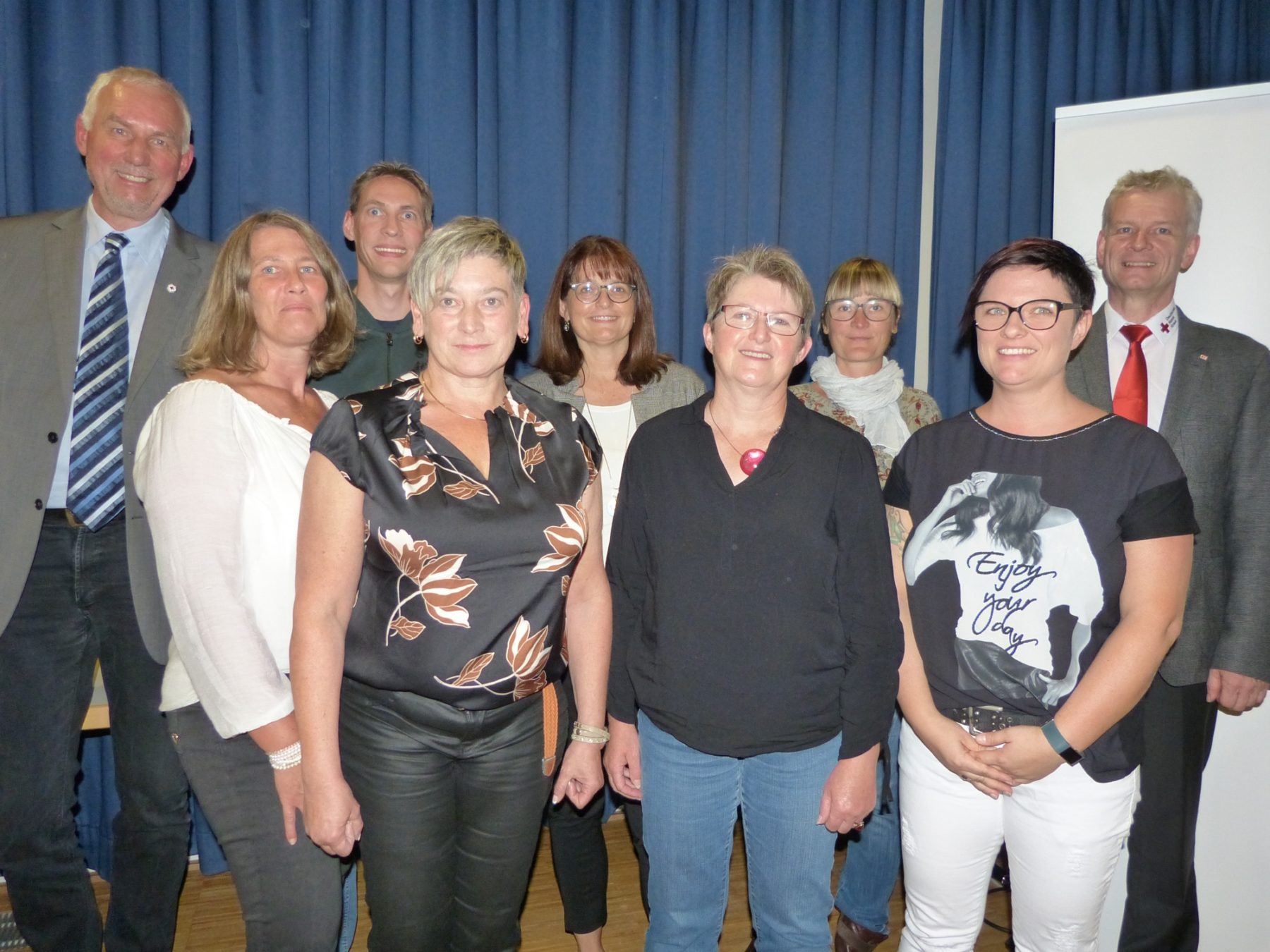 Der geschlossen wiedergewählte Vorstand (von links): Wolfgang Stunder, Axel Moosmann, Karl-Heinz Heitzmann, Manfred Wöhrle, Benjamin Seifritz, Thomas Haas, Kreis-Geschäftsführer Volker Halbe, Lothar Menke, Patrick Hug, Jürgen Nowak, Markus Müller, Siegfried Huber. (Nicht auf dem Foto: Raphaela Jehle und Benjamin Zoch). Foto: Inka Kleinke-Bialy