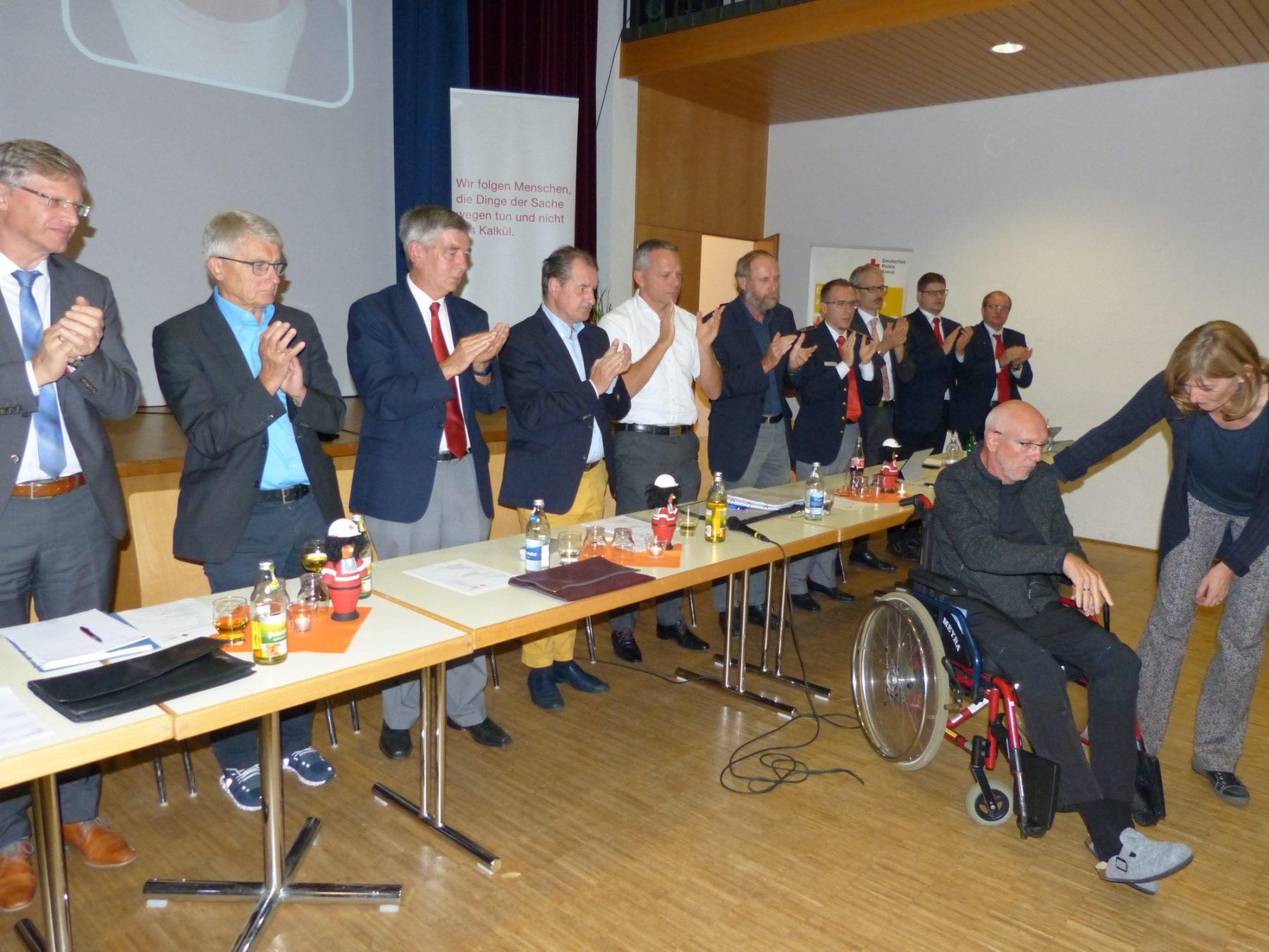 Nach seiner Verabschiedungsrede: Standing Ovations für Notarzt Ralf Greiner, vom Vorstand wie auch vom gesamten Saal.