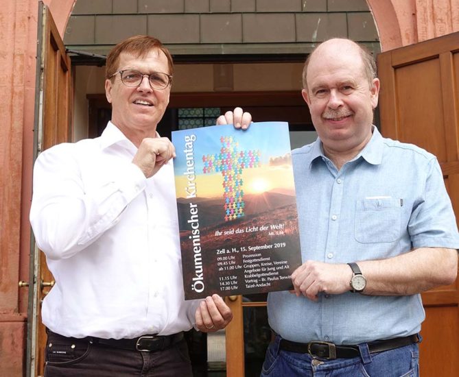 »Die Menschen in unserer Seelsorgeeinheit sehnen sich danach, ein gemeinsames Zeichen zu setzen, mit dem wir über Konfessionsgrenzen hinweg unseren gemeinsamen Glauben bezeigen und ein Bekenntnis unserer gemeinsamen Verantwortung für das Zusammenleben der Menschen ablegen«, erläutern Pfarrer Seibt für die katholische und Pfarrer Monninger für die evangelische Kirchengemeinde den Gedanken, der hinter dem Vorhaben »ökumenischer Kirchentag in Zell« steckt.