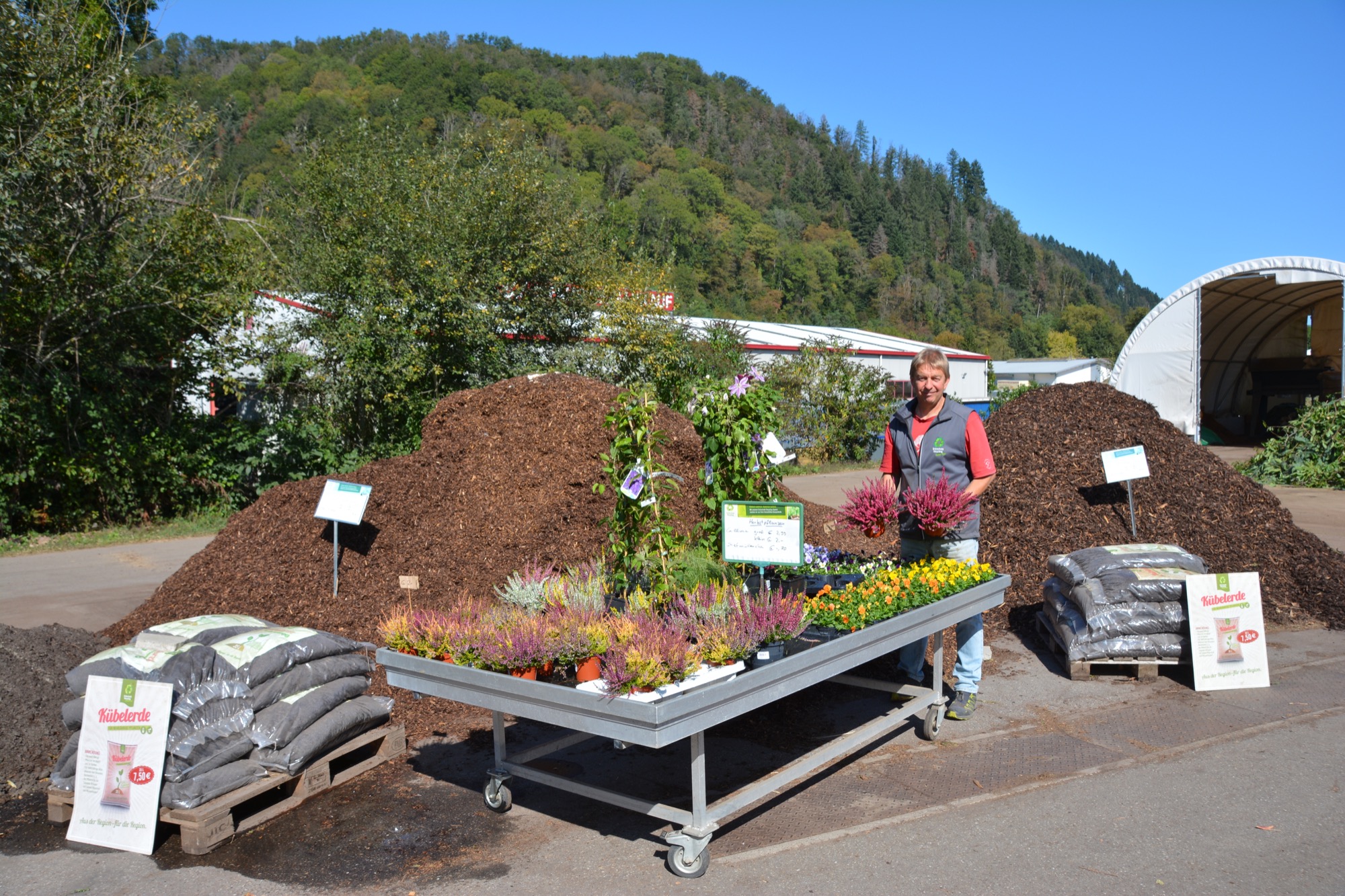 Bei Grünschnitt-Recycling im Steinenfeld bietet Inhaber Rudi Lang auch ein ausgewähltes Pflanzensortiment und hochwertige, gebrauchsfertig gemischte Erden an. Foto: Hanspeter Schwendemann