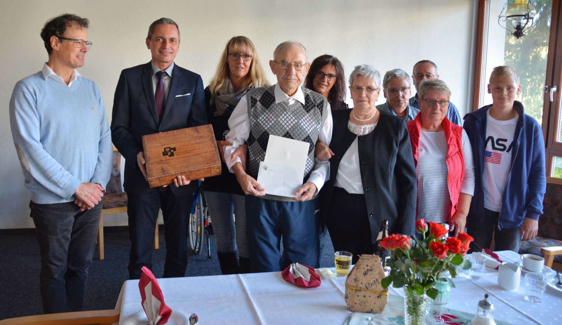 Die Reihe der Gratulanten wurde von Bürgermeister Günter Pfundstein angeführt, der dem langjährigen Mitarbeiter der Stadt Zell sowohl zum runden Wiegenfest gratulierte als auch für seine zuverlässigen Dienste in der Stadtgärtnerei dankte. Außerdem überbrachte er die Glückwunschschreiben des Ministerpräsidenten und des Landrats. Auch Pfarrer Reinhard Monninger sowie Heimleiter Michael Schlosser gratulierten Helmut Totzke persönlich zu seinem 90. Geburtstag.