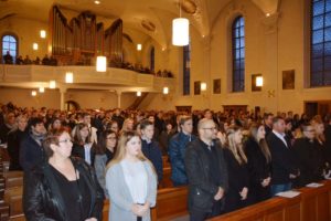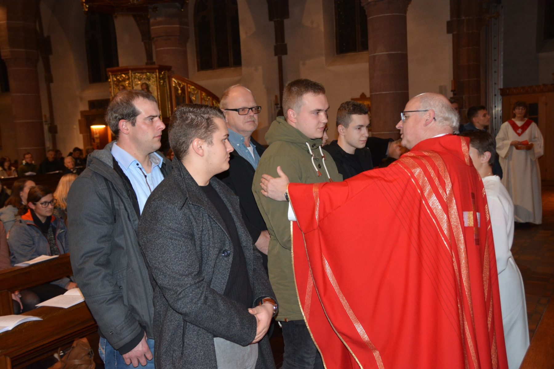 In seiner Predigt mahnte Bürkle, sich nicht vom »Ungeist« unserer Zeit anstecken zu lassen. Als Beispiel führte er den Angriff auf Samuel in Freiburg an, der auf facebook schilderte, wie ihm in einem Fitnessstudio seine Kippa vom Kopf gerissen und in den Mülleimer geworfen wurde. »Ihr seid hier, um euch für einen ganz anderen Geist einzusetzen«, gab der Prediger das Ziel vor. Jesus selbst habe diesen Geist vorgegeben und in jedem Menschen Bruder oder Schwester gesehen. Der Einsatz für den Mitmenschen sei gefragt. Dazu gäbe es vielerlei Beispiele. »Wichtig ist, dass ihr Farbe bekennt«, appellierte Dekan Bürkle an die Firmanden.