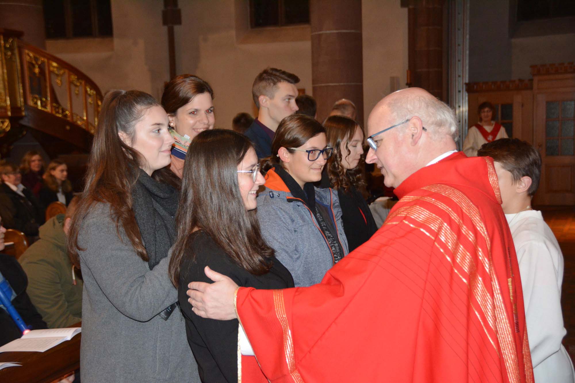 In seiner Begrüßung sagte Pfarrer Bonaventura Gerner, dass die Firmung der Jugendlichen ein Zeichen der Stärkung sei. Domkapitular Thorsten Weil, der in Nordrach und Biberach das Firmsakrament spendete, betonte, dass die jungen Christen nun an der Schwelle zum Erwachsenwerden stehen und dass sich ihnen unzählig viele Möglichkeiten bieten. Das Wirken des Heiligen Geistes sei notwendig, dass der Lebensweg gelinge und dass die jungen Menschen lernen, mit den Gefahren dieser Welt richtig umzugehen. Glücklich werde der, der gönnen und schenken könne. Domkapitular Weil wünschte den Firmlingen, dass sie freie Menschen werden.