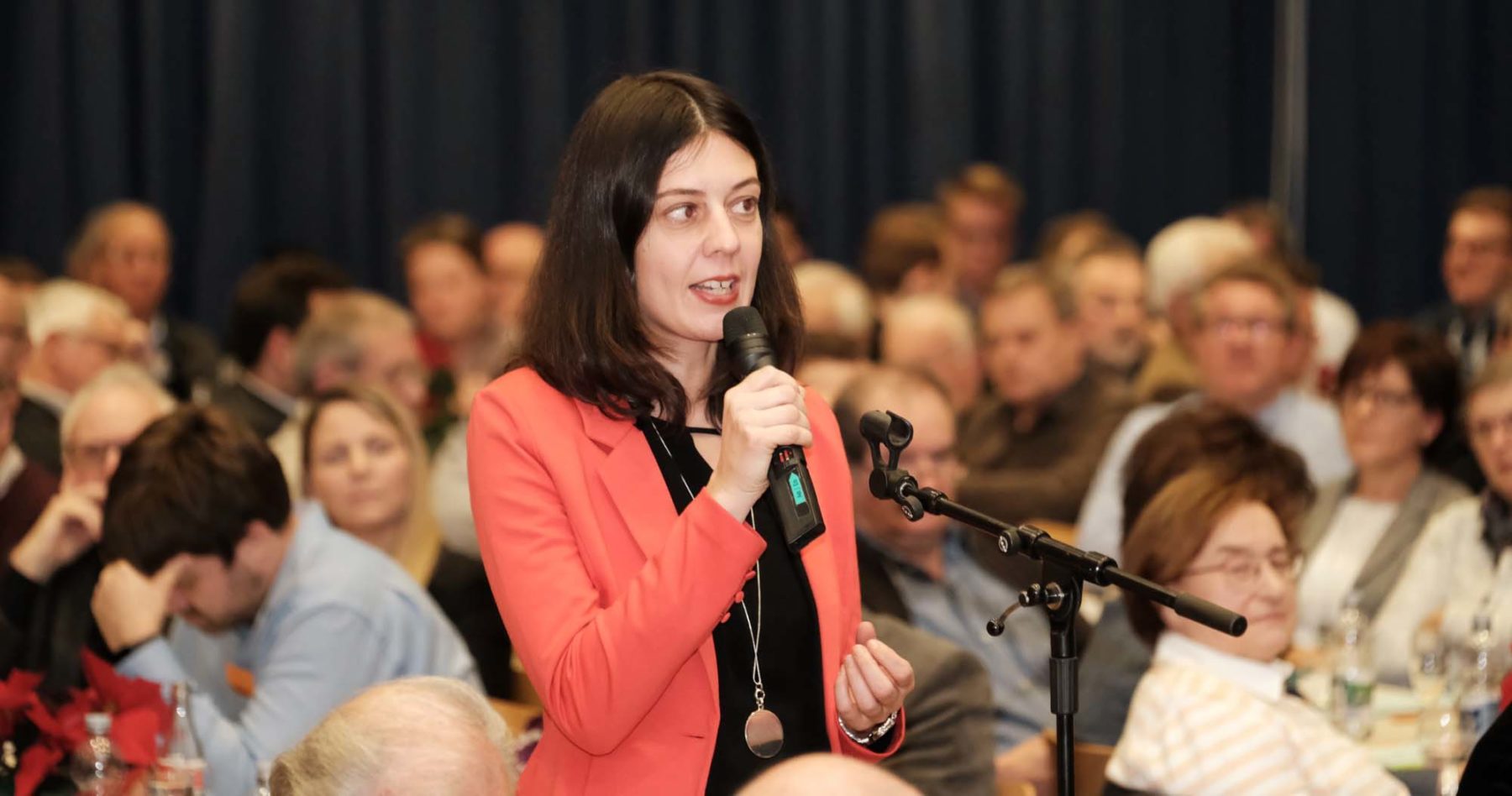 Mit Spannung erwartet worden war die Rede von Dr. Susanne Eisenmann, Landesministerin für Kultus, Jugend und Sport. Sie ist die Spitzenkandidatin der CDU Baden-Württemberg für die Landtagswahl 2021. Sie gab sich entschlossen, dass sich die CDU »als letzte verbliebene Volkspartei« aus ihrer schwierigen Situation heraus kämpfen könne, wenn es gelänge wieder klar ihre Werte erkennbar zu machen. Man müsse die Grundhaltung deutlich machen, damit den Wählern klar werde, warum es sich lohne, CDU zu wählen. Die Partei stehe für Versöhnendes, nicht für Vereinzelndes, wie es bei Grünen oder AfD der Fall sei. »Demokratie lebt vom Kompromiss und ist mühsam,« stellte sie fest.