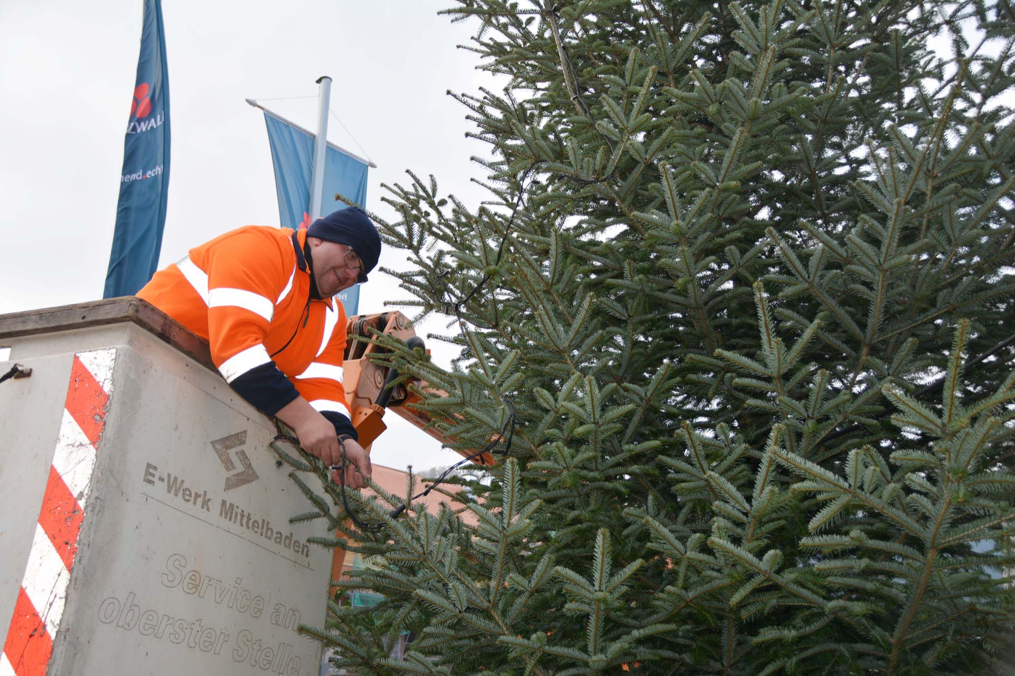 Am Montag und Dienstag werden vom Betriebshof nun noch die kleinen Tannenbäume an die Geschäfte im Stadtkern verteilt, die dann an den Hausfassaden installiert werden.
