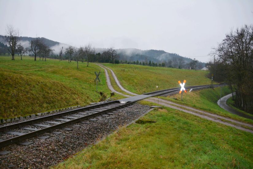Der Bahnübergang bei der Rösslemühle ist einer von drei Bahnübergängen, die technisch gesichert werden. Hier kreuzt ein Wirtschaftsweg die Harmersbachtalbahn. Es sollen vier Lichtzeichen und ein Warnsignal installiert werden. Die Kosten belaufen sich auf 439.245 Euro. Foto: Hanspeter Schwendemann