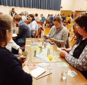 Gespielt wurde an sieben Tischen und es wurden elf verschiedene Spiele vorgestellt. Es standen Gesellschafts, Strategie-, Karten-, Kinder- und Partyspiele auf dem Programm. Waren die Regeln erläutert, konnten die Teilnehmer für 20 Minuten das jeweilige Spiel ausprobieren. Für das leibliche Wohl bei all der Spannung und Action waren die Mini-Päpers der Stadtkapelle verantwortlich, die für die Bewirtung zuständig waren.