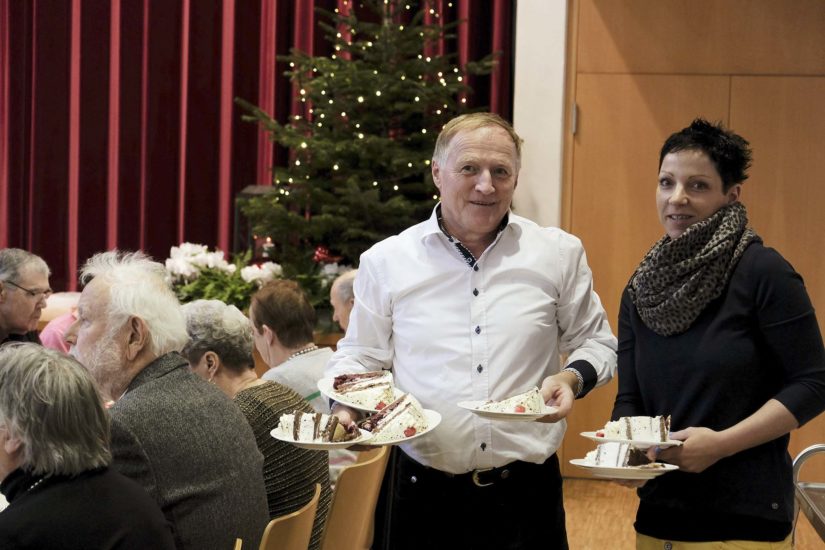 Nachdem sahnige Schwarz­wälder Kirschtorte serviert und auch sogleich genossen war, erklangen wieder Weihnachtslieder. Diesmal dargeboten von den Zeller Musikanten. Der traditionelle und wohl letzte Besuch des Nikolaus im Advent läutete den Abschluss des Nachmittags ein, es wurde noch einmal die Weihnachtszeit besungen.