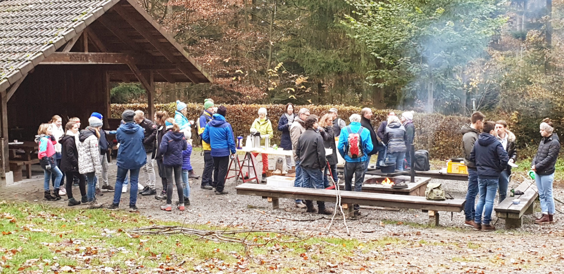 Bei herbstlichem Wetter führte Helmut König zum Grillplatz »Barack« und erklärte hierzu die historischen Hintergründe, die auf den ehemaligen Bergbau zurückzuführen sind. Dort angekommen erwarteten die Wanderer warme Getränke, Kuchen und eine sehr gut eingeheizte Feuerstelle.