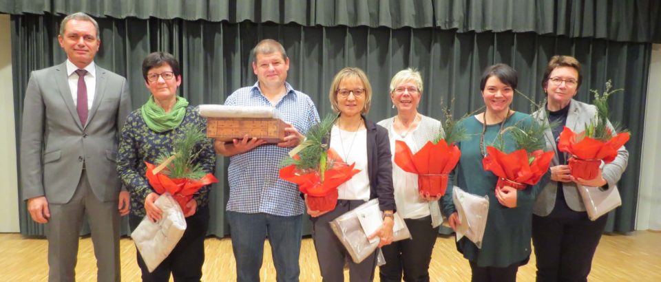 Ihr 20-jähriges Dienstjubiläum feierten Lorenz Breig (Ortsvorsteher in Oberentersbach) und Manuela Schimpfkäse (Erzieherin im Kindergarten Villa Regenbogen). 25 Jahre bei der Stadt Zell und im öffentlichen Dienst beschäftigt ist Martina Heßler, die im Kindergarten Villa Regenbogen als Erzieherin arbeitet. Manuela Laifer arbeitet seit 30 Jahren im Kindergarten Sternschnuppe als Erzieherin. Für 35 Dienstjahre wurden geehrt Sigrid Isenmann (vorher Einwohnermeldeamt, jetzt Baurechtsamt) und Siegfried Lehmann (Betriebshof). Auf stolze 40 Jahre als Mitarbeiterin bei der Stadt Zell kann Monika Schätzle zurückblicken, die als Sekretärin im Bauamt arbeitet.