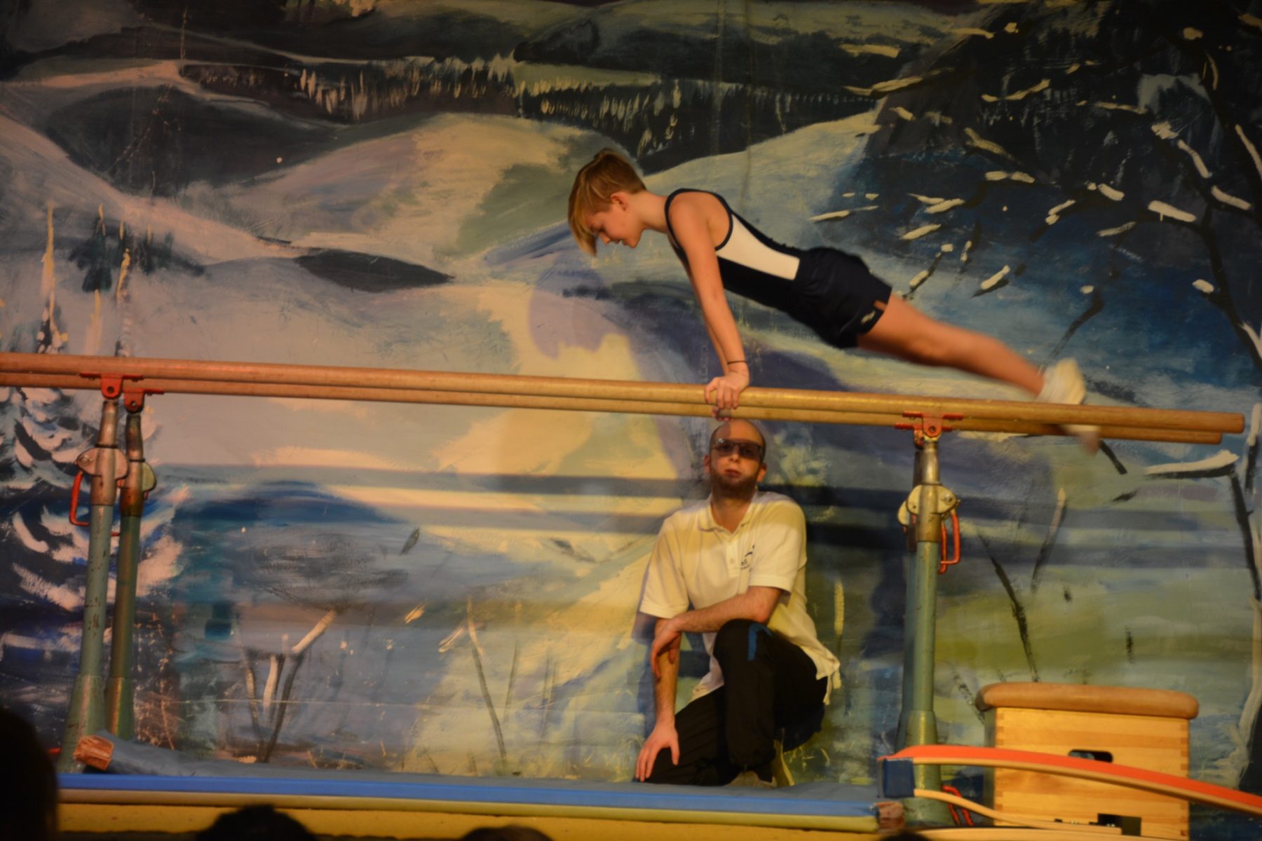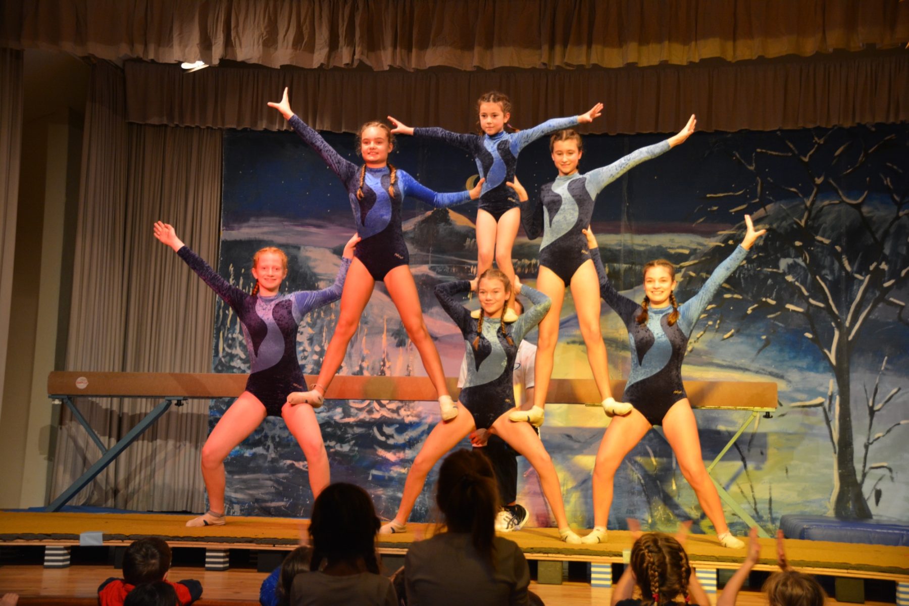 Mit einer kombinierten Einheit von Boden und Barren gaben die Jungs vom Geräteturnen einen Einblick in ihre Übungsstunde. Die Geräteturnen-Mädchen ab der 4. Klasse nutzen neben dem Boden auch noch ein Trampolin, um mit besonders weiten und eleganten Sprüngen ihre Eltern und Großeltern im Publikum zu beeindrucken. Das Finale des Nachmittags bestritt die Leistungsgruppe Mädchen Geräteturnen. Sie hatten sich mit dem Schwebebalken ein besonders schwieriges Sportgerät ausgewählt. Die jungen Turnerinnen erhielten für ihre gekonnten Übungen vom Publikum großen Applaus.