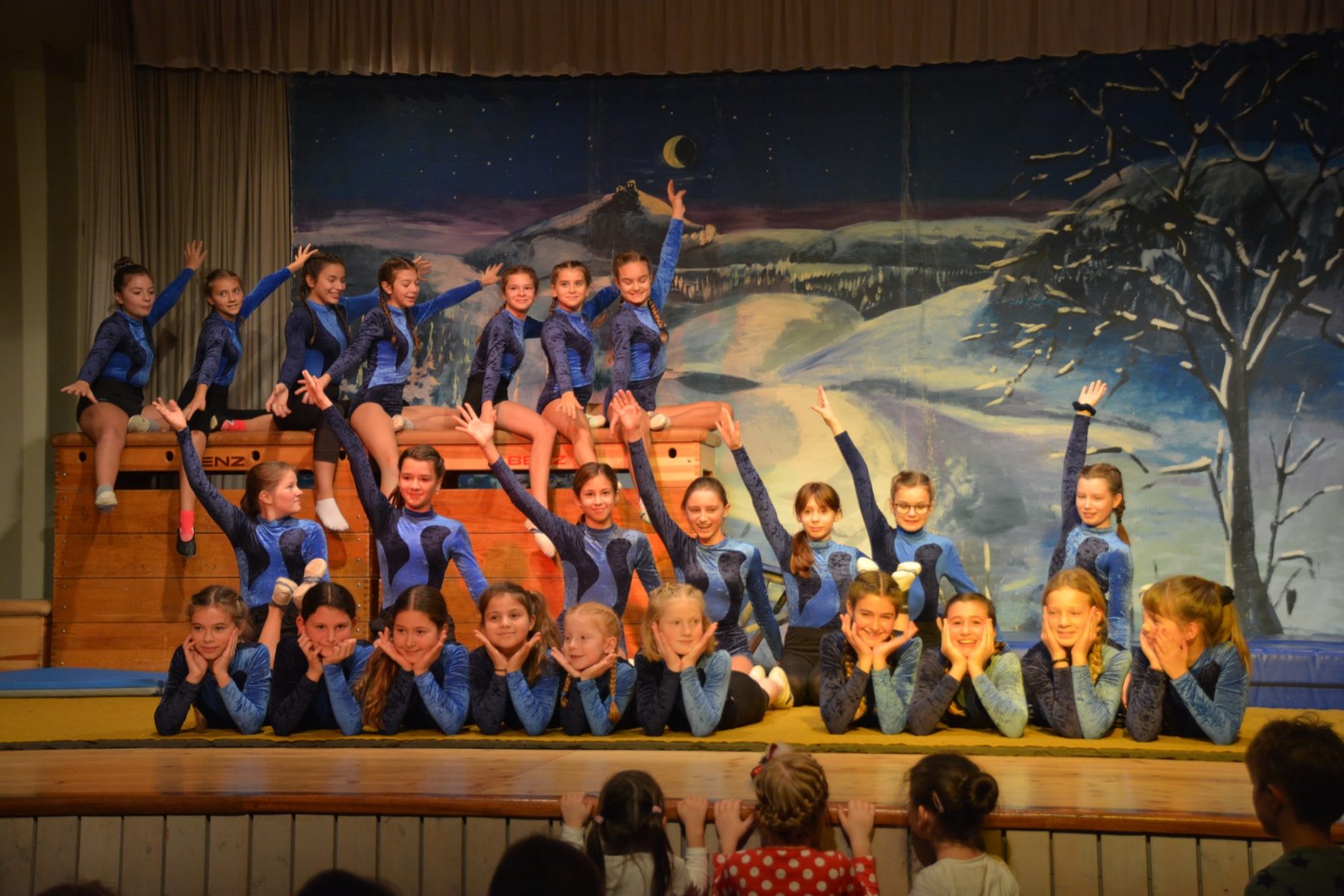 Nach der Begrüßung gehörte die Bühne den Kindern. Kleine »Turnmäuse« zeigten ihre ersten Übungen. Danach folgten die Gym-Kids als muntere Nikolause. Mutig balancierten sie über die Schrägbank und sprangen vom Kasten. Die Mädchen der Klassen 1 bis 3 Geräteturnen präsentierten eine Bodenkür und zeigten, dass aus ihnen schon gute Turnerinnen geworden sind.