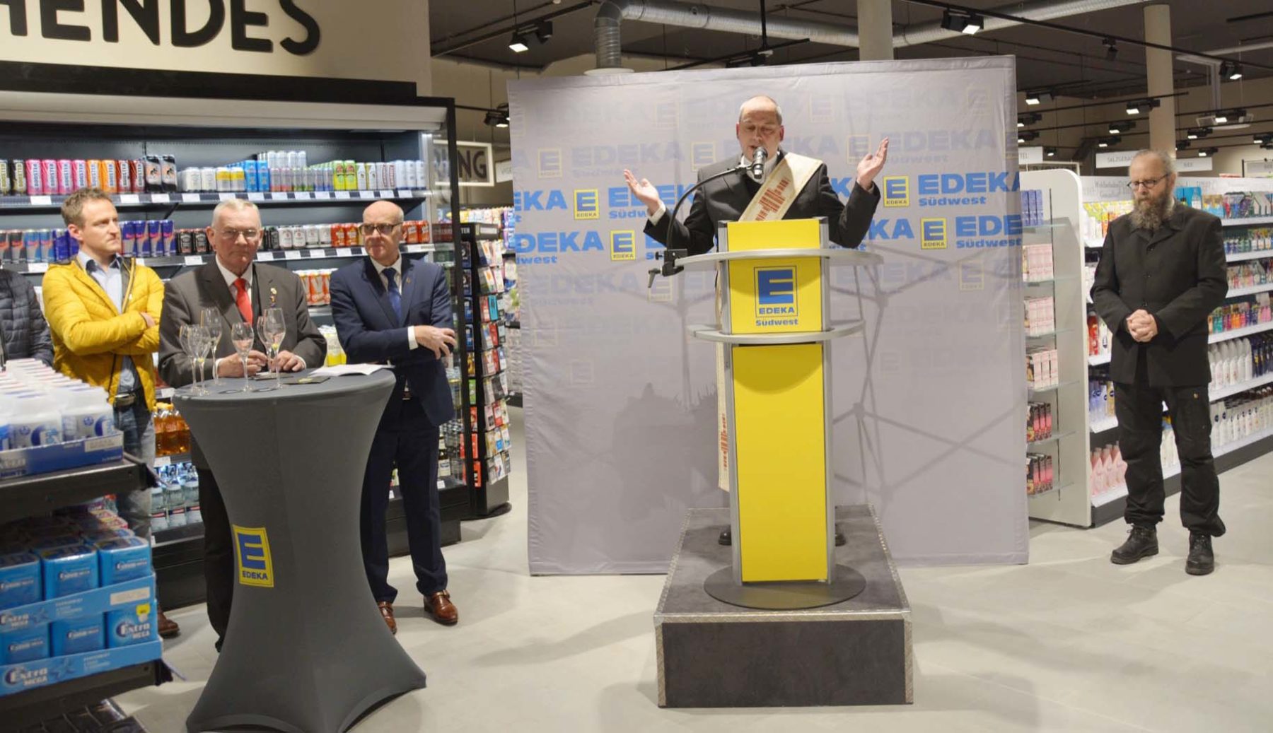 »Was kann einer Stadt besseres passieren, als mitten im Stadtzentrum einen Inhaber geführten Familienbetrieb zu erhalten?«, stellte Bürgermeister Dr. Gallus Strobel die rhetorische Frage und rief den Gästen zu: »Heute ist ein Festtag für die Stadt Triberg!« Es seien schwierige Kämpfe gewesen, mitten im Zentrum einen Edeka-Markt zu verwirklichen. Letztlich zähle das Ergebnis und der Bürgermeister zeigte sich sicher, dass die Familie Bruder in Triberg einen riesigen Erfolg haben werde.
