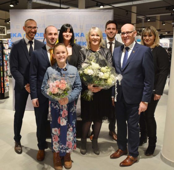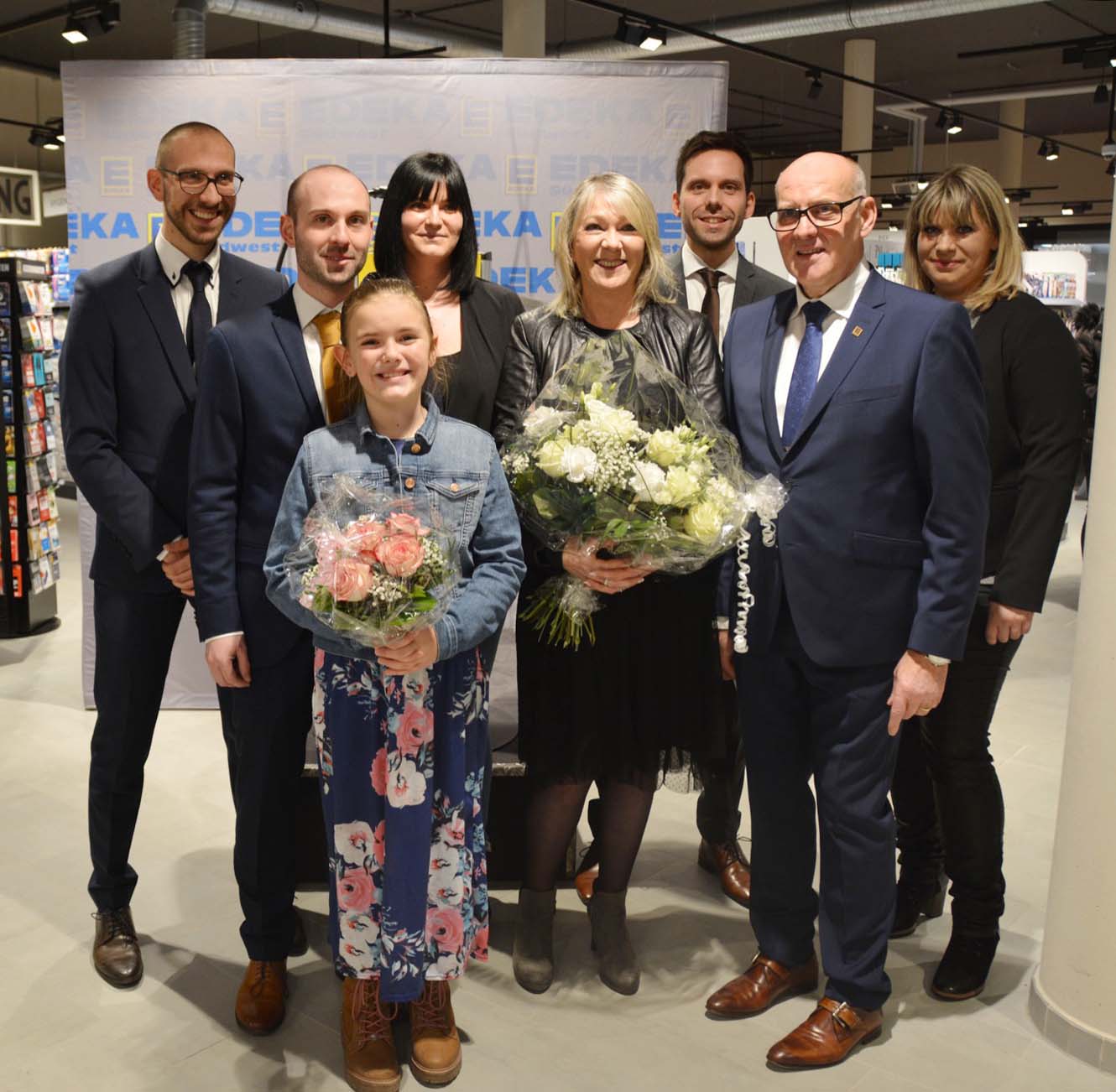 Bei der anschließenden Feierstunde konnten die Ehrengäste der Einweihungsfeier den neuen Edeka-Markt Bruder entdecken und zahlreiche Spezialitäten genießen, die hier angeboten werden. Dass auch die eingebaute Alarmanlage funktioniert, wurde ebenfalls deutlich. Der Dunst der vom Personal mitten im Markt frisch angebratenen Steaks No. 1 hat kurzzeitig den Alarm ausgelöst. Den Genuss und die Freude über die Neueröffnung konnte dies aber nicht beeinträchtigen.