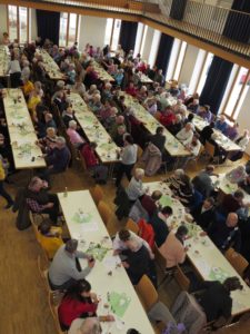 Michael Horst vom Vorstand der Sozialstation konnte sich über einen voll besetzten Saal im Kulturzentrum freuen. Er begrüßte besonders Pfarrer Bonaventura Gerner von der katholischen Kirchengemeinde und Pfarrer Reinhard Monninger von der evangelischen Gemeinde. Beide Kirchen sind Träger der kirchlichen Sozialstation St. Raphael; die politische Gemeinde leistet weitere finanzielle Unterstützung. Wie bereits ausführlich berichtet, wird die Sozialstation in Erweiterung, Umbau und Sanierung ihres Gebäudes 1,3 Millionen Euro investieren. Die Tagespflege wird erweitert, um der großen Nachfrage nach Tagespflegeplätzen nachkommen zu können.