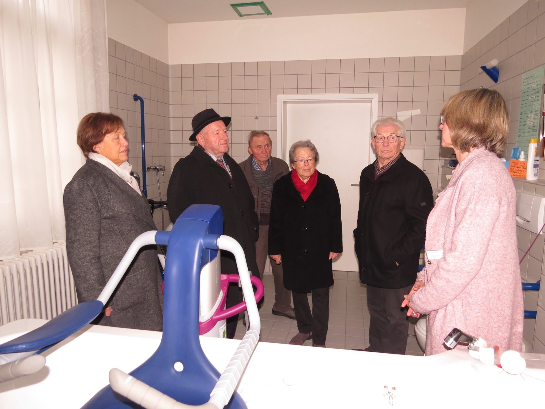 Im Engelbau nebenan erklärte Mitarbeiterin Birgit Stein auf Nachfrage, dass die zukünftigen beiden Tagespflegegruppen individueller gestaltet werden können. Im Obergeschoss werden die Gäste betreut, die noch körperlich mobil sind. Die bisher im Obergeschoss untergebrachte psychologische Beratungsstelle wird aus dem Gebäude ausziehen. Fast jeder Raum im Obergeschoss wird einer neuen Nutzung zugeführt – eine Wand wird versetzt. Die detaillierten Baupläne für den Umbau waren auf einer großen Wand ausgehängt und konnten besichtigt werden.