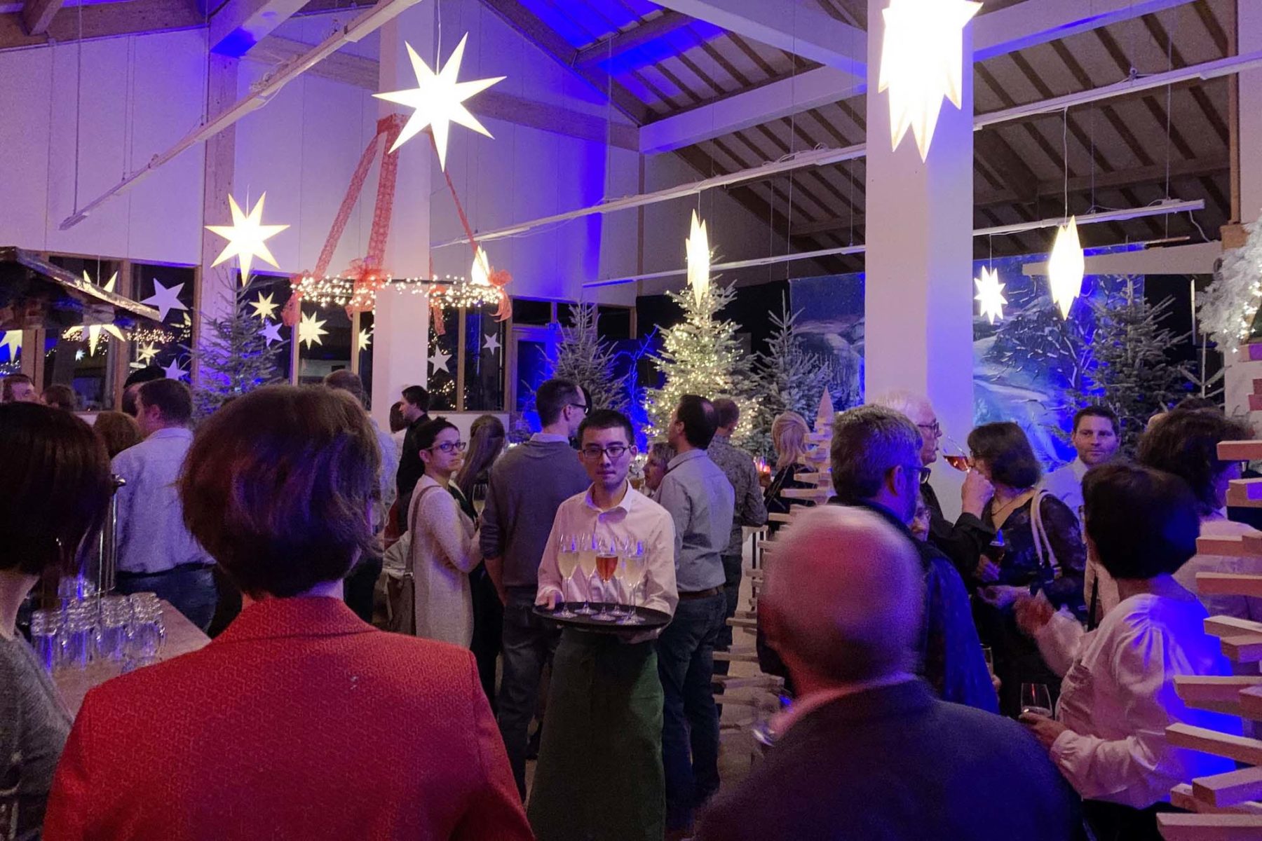 Zum Gelingen der Weihnachtsfeier in den eigenen Produktionsräumen hatten auch die Mitarbeiter selbst beigetragen. Sie sorgten für eine wunderbare Dekoration der Halle und übernahmen die Tontechnik. Nach dem festlichen Menü, das vom Team des Hotels Rebstock aus Durbach serviert wurde, luden das »Biereckle« und eine Cocktailbar zum gemütlichen Verweilen ein.
