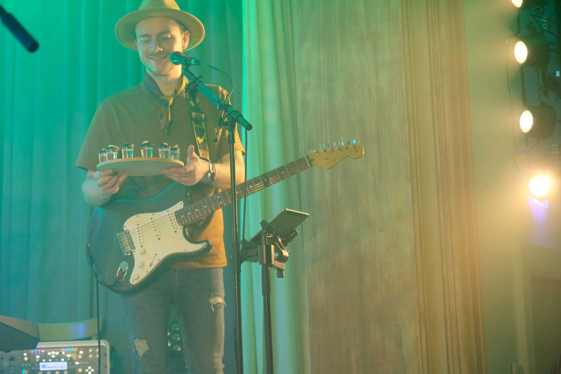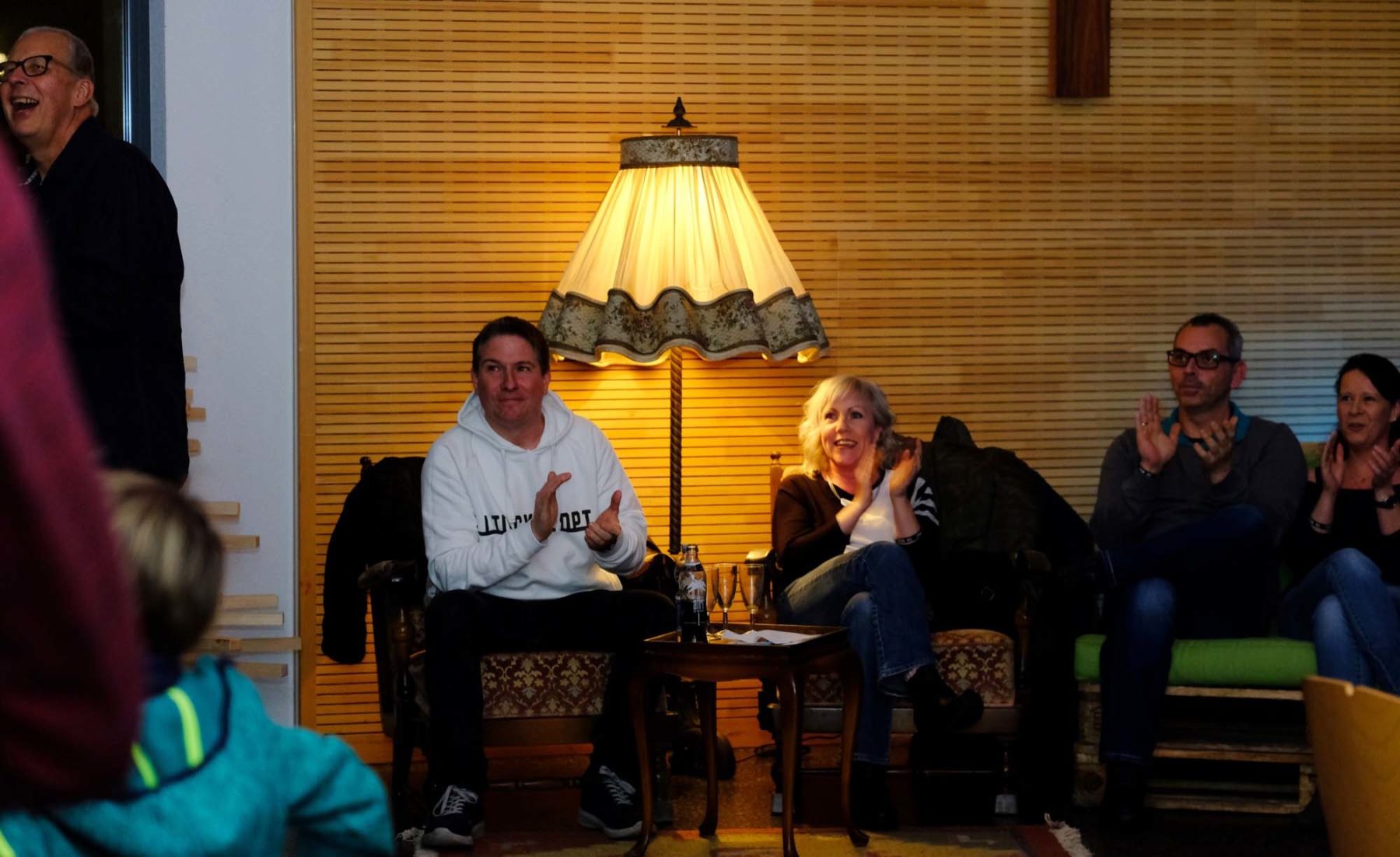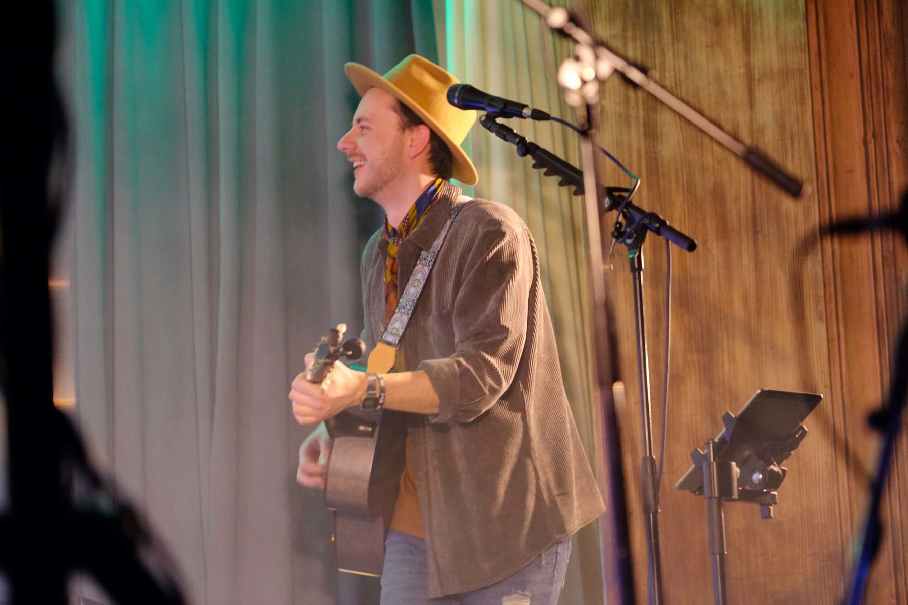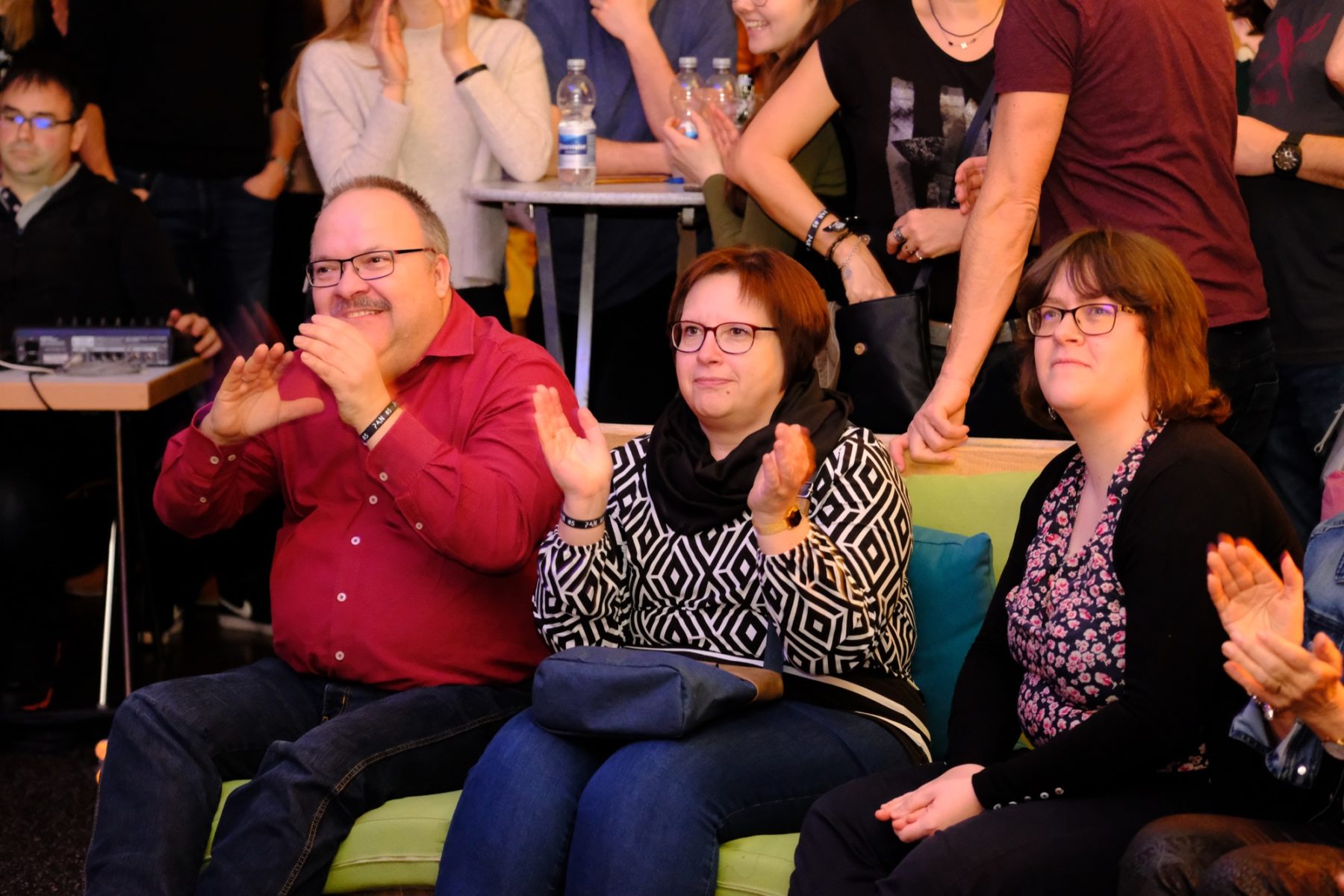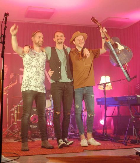 Die letzten Auftritte liegen noch gar nicht so lange zurück. Beim »Weihnachtshirsch« rockten Pan den Zeller Winter noch Open-Air. Beim Geburtstag ging es im Pfarrheim kuscheliger zu, geradezu wohnzimmermäßig. Als Rückblende auf die Gründungszeit ließ sich das Setting zu Beginn auch verstehen: ein großer Teppich in der Mitte, drumherum bequeme Sofas, Großmutters Lampenschirme inmitten der Weihnachtsdeko. Wer »Pan« schon länger kennt, weiß, dass die drei Musiker Simon Esslinger, Sven Schneider und Lukas Pferrer die Band einst unter dem Namen »Wohnzimmeracoustic« gegründet hatten. Zurück zu den Wurzeln also zu Beginn, später dann der Umzug auf die große Bühne.