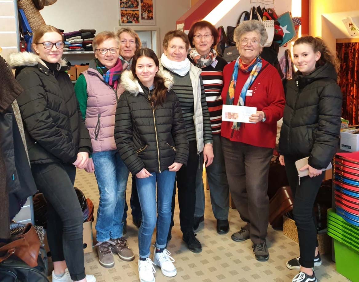 Am vergangenen Dienstag war es dann soweit. Gina Lehmann, Karolina Eble und Lilli Gärtner besuchten stellvertretend für die ganze Klasse R8AES nebst Klassenlehrerin die Kleiderkammer und hatten eine große Überraschung im Gepäck. Satte 80 Euro erbrachte der Verkauf von Kaffee und Kuchen und wurden in bar in der Kleiderkammer übergeben.