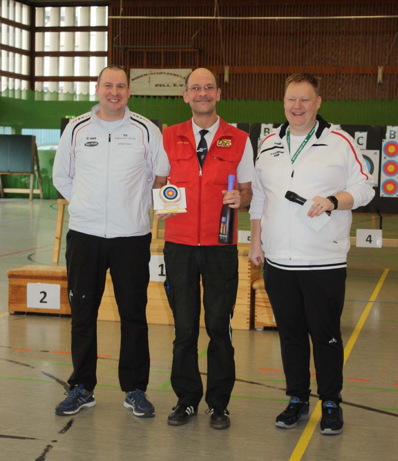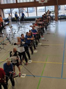 Am Samstag startete man mit einem ausgebuchten Hallenturnier ins Wochenende. Die Schützen wurden herzlich von Sebastian Gingter, zweiter Vorsitzender, und Andreas Güntert, erster Vorsitzender, begrüßt. Sie wünschten allen Schützen einen fairen Wettkampf und »alle ins Gold«. Begrüßt wurde Andreas Böhm, der als Kampfrichter aus dem »Schwobe-Ländle« nach Zell angereist war. Nach kurzer Einweisung durch Andreas Böhm in den Wettkampf startete das Turnier pünktlich um 10 Uhr mit dem Einschießen der Distanzen. Anschließend folgten dann die ersten Wertungspfeile. Nachdem der erste Durchgang vorbei war und alle ihre Wertungspfeile geschossen hatten, folgte noch ein Spaßschießen, bei dem es Sachpreise zu gewinnen gab. Nach der Auswertung der Wertungspfeile folgte die Siegerehrung durch Sebastian Gingter in der Handicap-Klasse. Alle Schützen durften sich über einen Pokal und eine Urkunde freuen. Die Freude war groß bei den Schützen, viele strahlende Gesichter gab es, egal welche Plätze erreicht wurden. Aber nicht nur im Einzelnen, sondern auch in der Mannschaftswertung gab es kleine Geschenke und Urkunden für die Schützen. Für das 40. Hallenturnier gab es einen besonderen Pokal, der mit Hilfe einer Schreinerei aus Zell angefertigt wurde, in Form einer Zielscheibe. Nach der Siegerehrung gab es noch ein Dankeschön für Bernhard Horne. Er betreute die Schützen von der Esther-Weber-Schule Emmendingen. Ebenso ging ein Danke an Marita und Hans Rittman vom ISBZ Hesselhurst, die im Februar nach zehn Jahren ISBZ Hesselhurst und 30 Jahren Bogensport in den Ruhestand gehen. Sie bekamen zur Erinnerung einen Pokal und ein Präsent überreicht. Wie im Vorjahr reiste die Hamburgerin Bea Habertag vom Blankeneser MTV extra für das Handicap-Turnier an. Für die weiteste Anreise bekam sie einen Hahn-und-Henne Teller geschenkt. Ihr Fazit zum Turnier: »Ein perfekt organisiertes Turnier, ein reichhaltiges Buffet, das keine Wünsche offen ließ«. Sie freut sich schon auf das nächste Handicap-Turnier, welches im Mai in Emmendingen in der Esther-Weber-Schule stattfindet. Sie möchte, wenn es ihre Gesundheit zulässt, nächstes Jahr wieder nach Zell kommen.