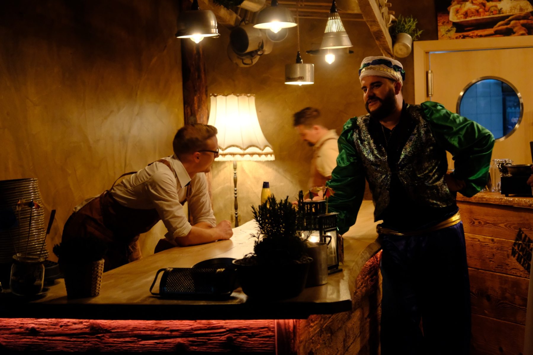 Unter »Biberacher Strickstunde« kann man sich ebenfalls so einiges vorstellen. Die Idee, dass Insel-Jonas und Insel-Samuel sich zum Kettenhemd-Stricken treffen, ist dabei bestimmt nicht der erste Einfall. Während die beiden also »Das Boot« schauen und auf dem Sofa Ring für Ring das Kettenhemd knüpfen, erfährt das Publikum allerhand übers Krieg‘sche Familienleben, den roten Teppich am Bahnhof, wirre Sprachnachrichten bei Whatsapp und vieles mehr.