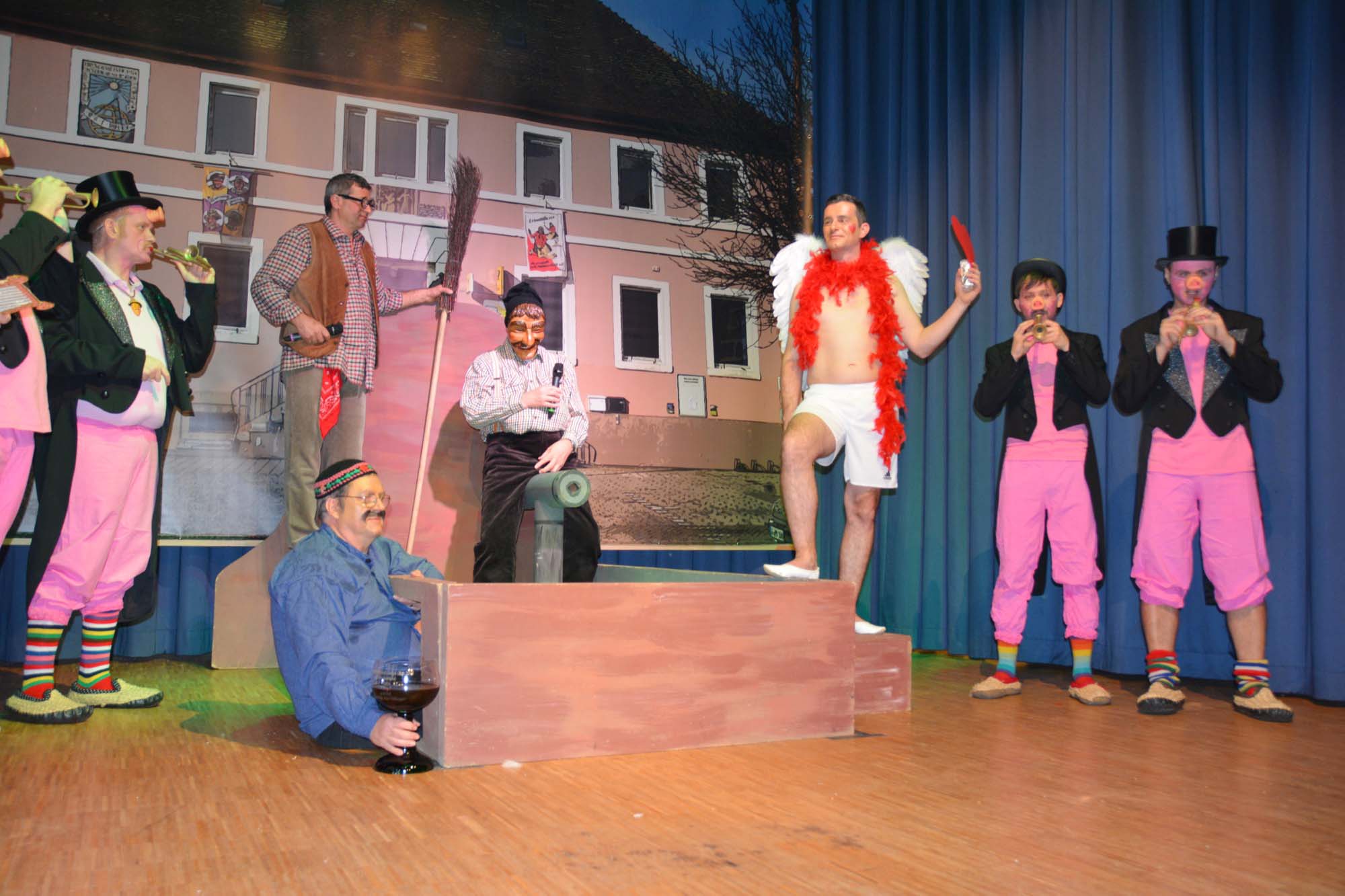 »Ein totales Fiasko«, zeigte sich die Oberhexe enttäuscht, dass es keine Hexe auf den Brunnen geschafft hat. Der Teufel wollte wissen wie es kam. Der Engel erklärte: »Er het halt von einem schönen Narrenbrunnen geträumt.«