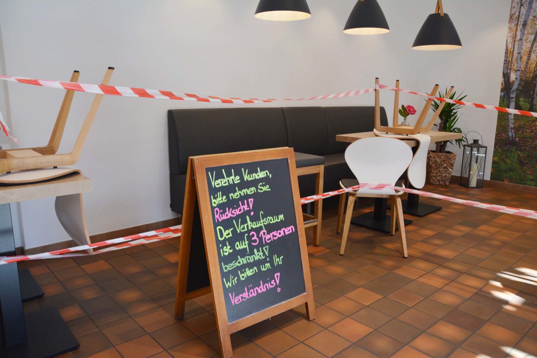 Auch für die noch geöffneten Geschäfte sind es keine einfachen Zeiten. In den Bäckereien sind die Aufenthaltsbereiche abgesperrt, und die Zahl der Kunden im Verkaufsraum ist beschränkt.