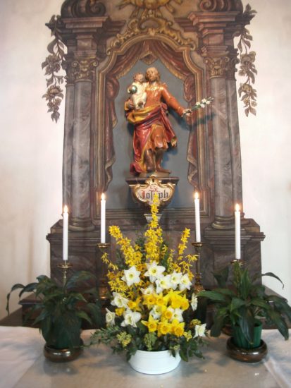 Alle freuten sich, dass der Josefsaltar in der Wallfahrtskirche wie immer mit farbenfrohen Frühlingsblumen als Zeichen der Hoffnung geschmückt war. Der heilige Josef ist in der katholischen Kirche der Beschützer der Familien und der Josefstag, 19. März, zählt in normalen Zeiten zu den großen Wallfahrtstagen in der Zeller Wallfahrtskirche. Hinweis: Vorerst sollen Kirchen im Erzbistum Freiburg für das private Gebet geöffnet bleiben.