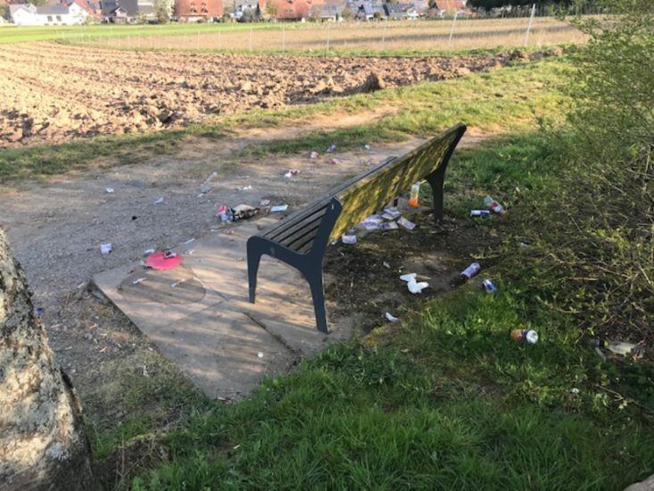 Liebe »Schwarzwälder Post«, bei meiner täglichen Runde oberhalb des Neubaugebiet »Ziegelfeld« mit dem Hund sammle ich leider (täglich), trotz vorhandenem Mülleimer tütenweise Flaschen und Müll ein. Am Montag war ein Hähnchenessen inklusive Wein rund ums Bänkchen verteilt.