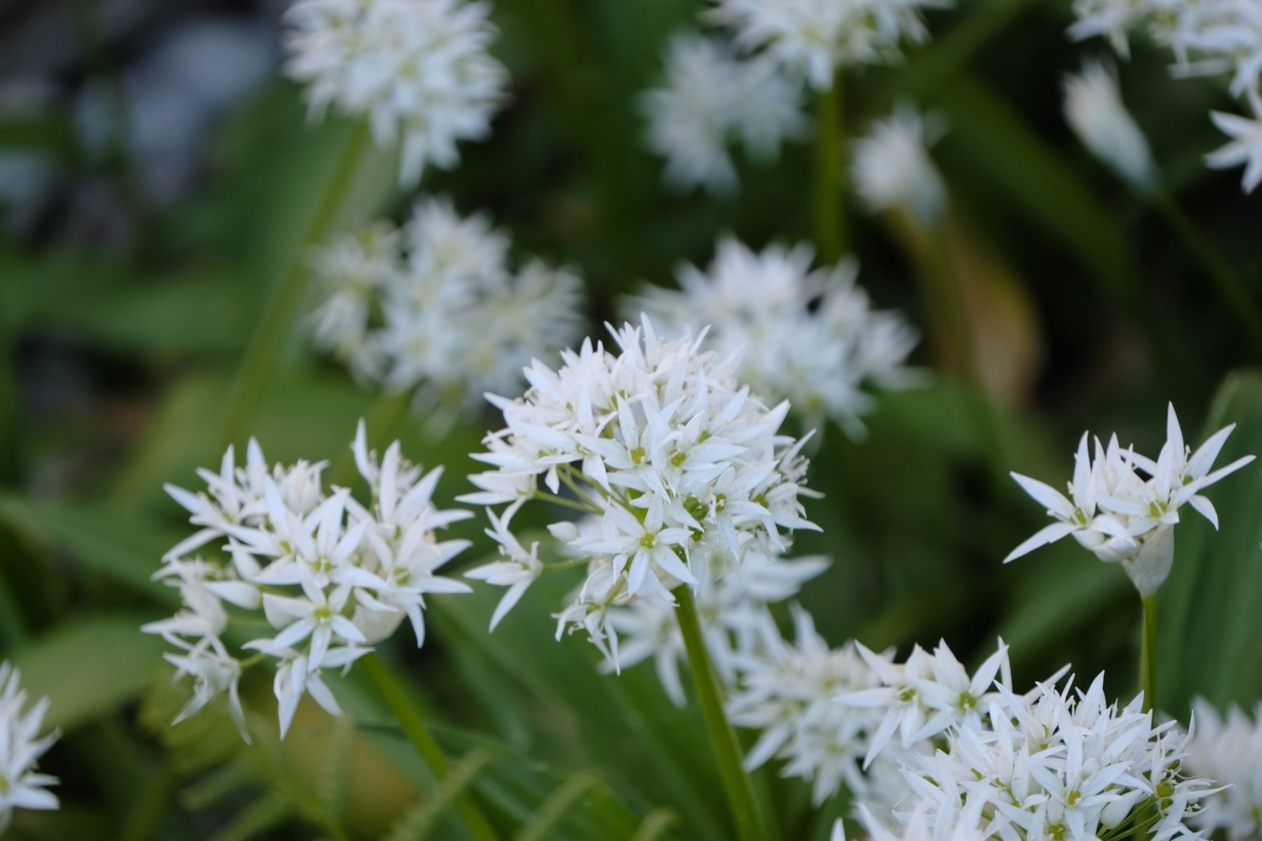 Der Bärlauch ist eines dieser Gewächse, die meistens das bereits angesprochene Schattendasein fristen. Allium ursinum heißt er botanisch, was wörtlich übersetzt der Lauch des Bären bedeutet und somit der deutschen Bezeichnung ziemlich nahe kommt. Wie seine Küchenverwandten Zwiebel und Knoblauch treibt auch er aus unterirdischen Speicherorganen die grünen Blätter. Sie sind in diesem Falle für Feinschmecker der Pflanzenteil des Begehrens. Im April erscheinen die reinweißen, duftigen Blütenkugeln über den Blättern. Jede einzelne besitzt zahlreiche Einzelblüten, deren Aufbau ein wahres Fest für Geometriefreunde ist. Drei Symmetrieebenen laufen strahlenförmig durch die Blüten. Wer Bärlauch im Garten hat und ihn blühen lässt, tut auch Wild- und Honigbienen etwas Gutes. Die Blüten werden gerne von den Insekten angeflogen.