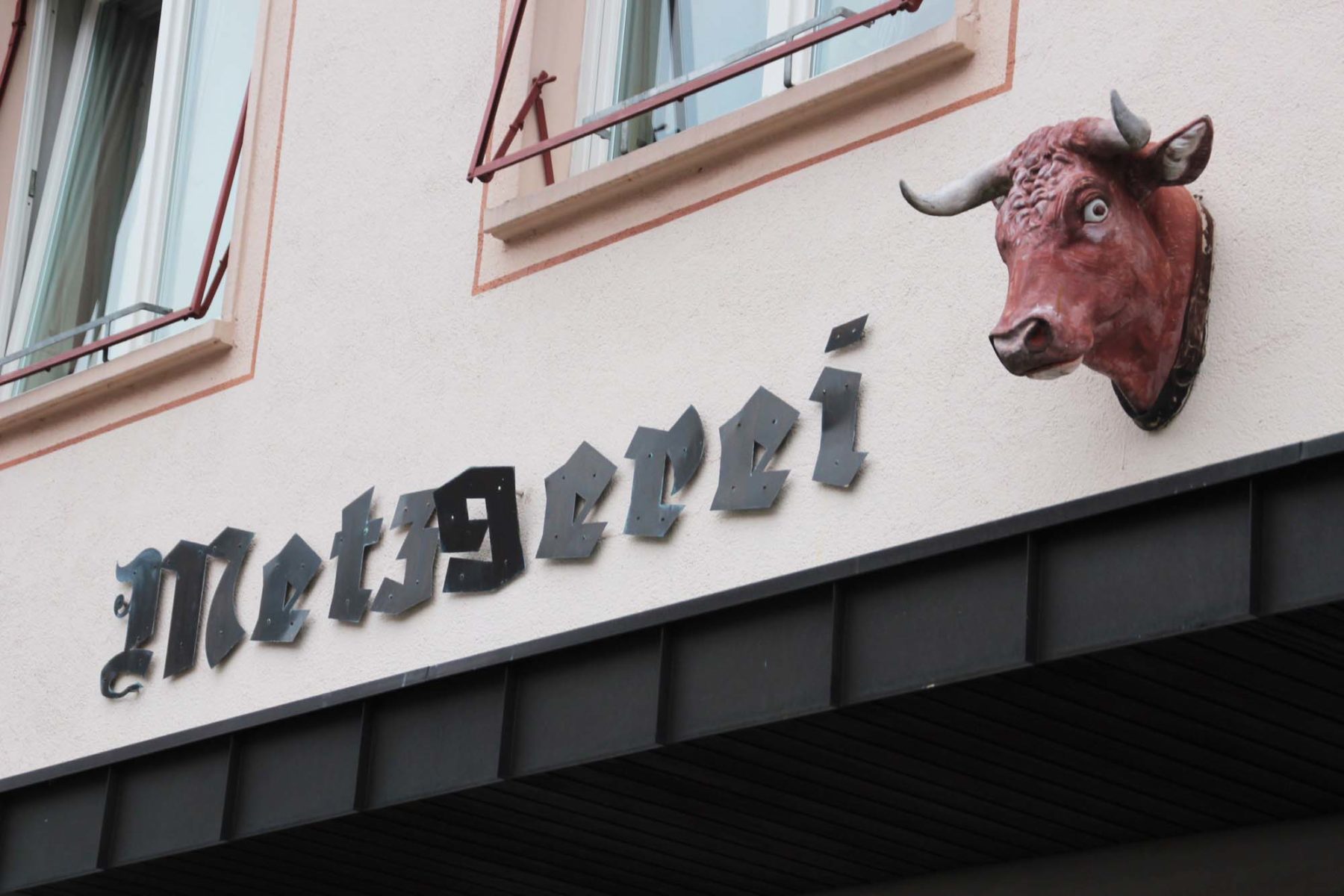 Aber bald verschwindet ein weiteres tierisches Wahrzeichen, wenn das »Haus Meier« – der ehemalige »Meier-Metzger« – nach Ostern dem Neubau der Rathauserweiterung Platz macht. Der bullige Stierkopf über dem einstigen Verkaufsladen ist schon länger abmontiert. Auch der braune Wildsaukopf, der jetzt noch den weißen Klinkerbau ziert und ein beliebtes »Örtchen« für Tauben ist, wird dem Wandel zum Opfer fallen.