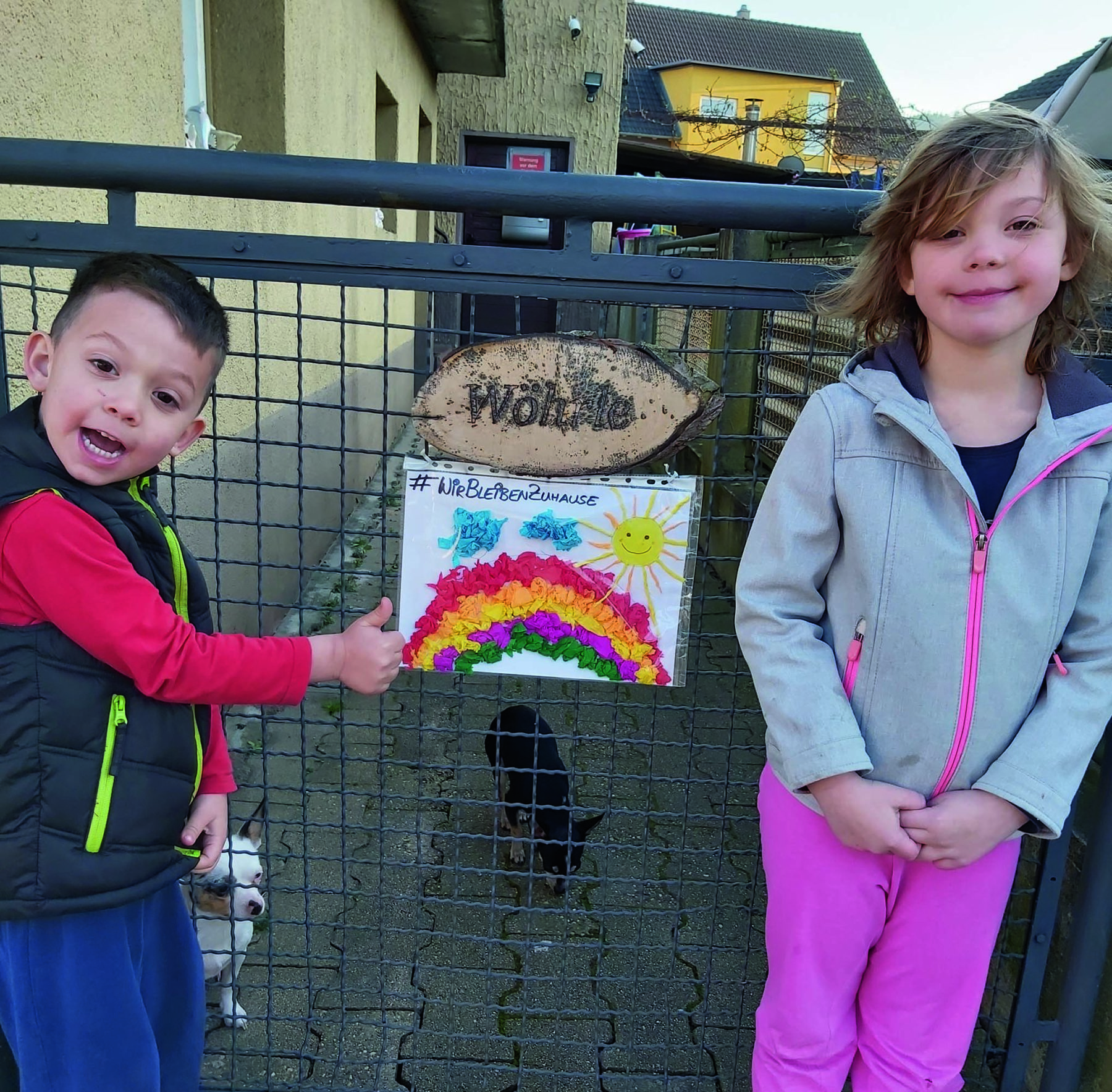 Alina – Julie. Hallo zusammen, aufgrund eines WhatsApp- Status, haben wir einen Regenbogen gebastelt und ihn an unser Eingangangstor gehängt. Die Zeit im Moment ist für uns alle sehr schwer, darum wollen wir anderen Kindern und unsere Mitmenschen ein bisschen Farbe in das Leben bringen.  Wir hoffen euch gefällt diese Idee. Liebe Grüße und bleibt gesund. Alina – Julie Wöhrle