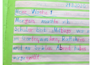 Charlotte, die erst in der 1. Klasse ist, hatte die Idee, ihre Unternehmungen aufzuschreiben. Super, Charlotte!