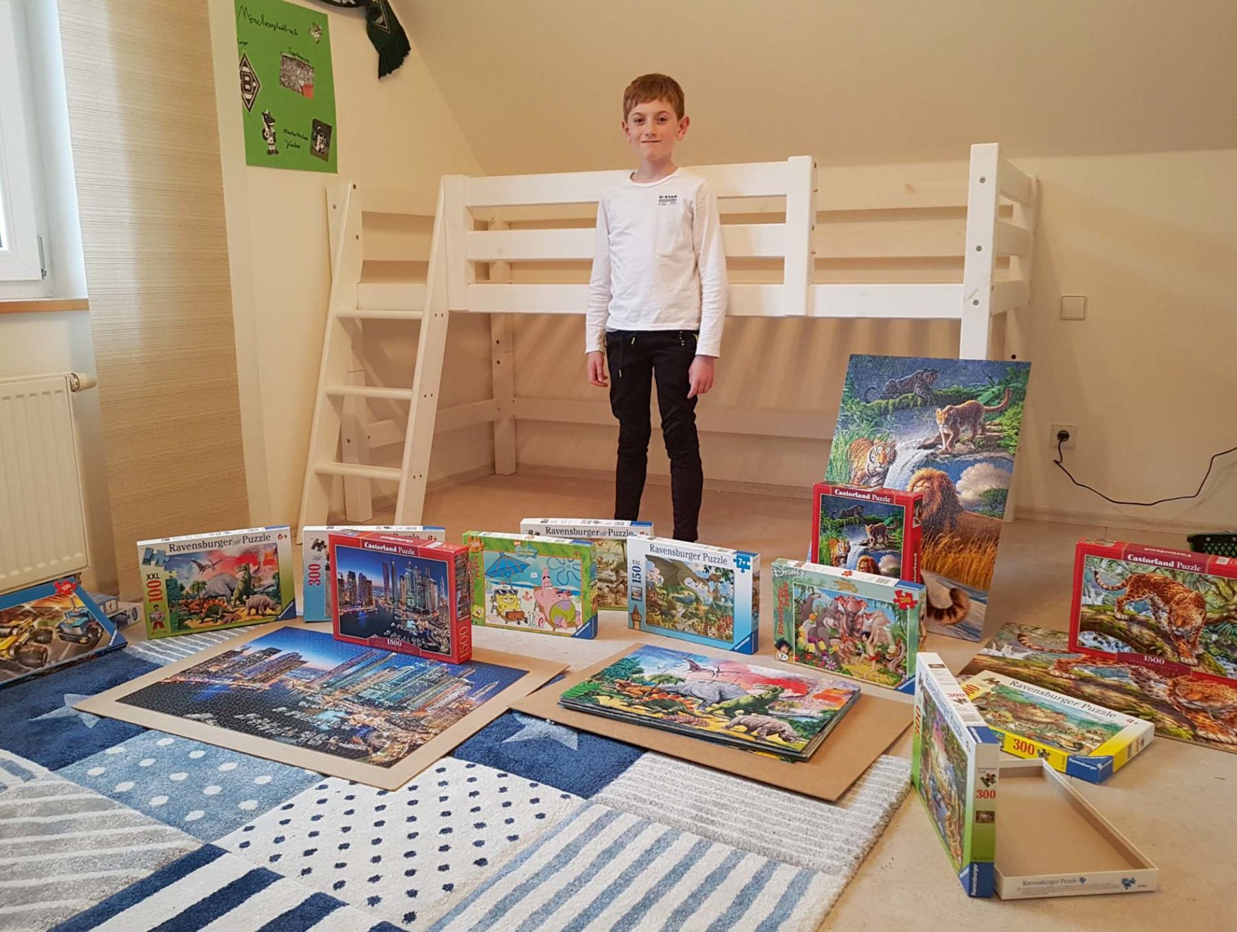 David puzzelt, puzzelt und puzzelt. Er hat jetzt sogar ein Puzzle mit 2000 Teilen geschafft. Spitze, David! Das ist eine super Leistung. Viel Spaß weiterhin.