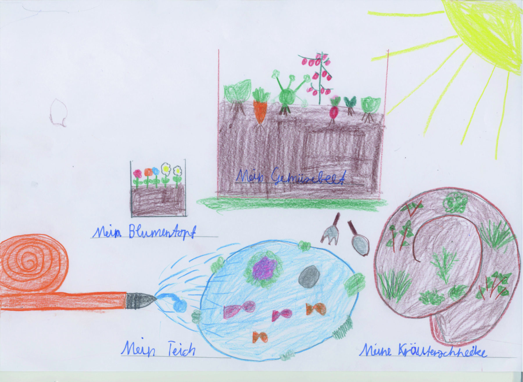 Marcel. Wir waren in Unterentersbach auf dem Blumenfeld und haben viele schöne Tulpen gepflückt. Heute waren wir im Garten und haben unser Gemüsebeet angelegt. Wir haben Rucola, Karotten, Radieschen, Kohlrabi und Salat gesät. In einen Topf habe ich Kamille und in einen anderen Sommerblumen für die Bienen angesät. Wir machen morgen in kleine Töpfchen noch Tomaten und Gurken. In die Kräuterschnecke machen wir Petersilie, Schnittlauch, Minze, Dill und Thymian. Für unser Gemüsebeet habe ich kleine Schildchen aus Holz gebaut. Ein Bild habe ich auch gemalt. Wir haben viel Spaß.