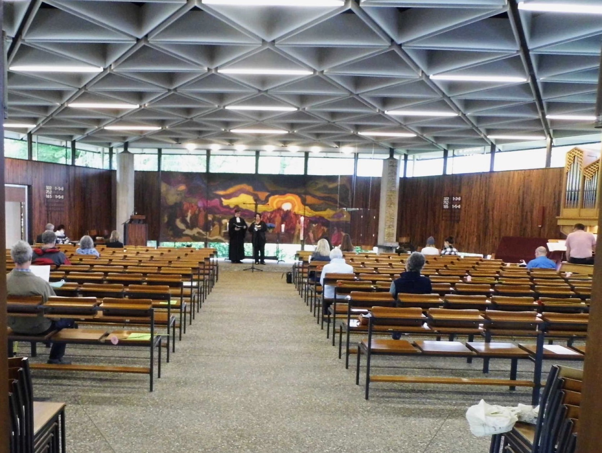 Nach mehreren Liedvorträgen durch Bianca Monninger, Lesung und Fürbitte durch Waltraud Baumann sowie der Predigt fand die Gemeinde in einem stillen Vater Unser zusammen. In seinen Ankündigungen wies Joachim Groß auf die notwendigen Vorsichtsmaßnahmen bei Verlassen der Kirche hin. Der Organist Markus Staiger entließ die Gemeinde nach dem Segen mit einer schönen Abschlussmusik in den Sonntag. Zurück auf der Straße fand sich die eine oder andere Gruppe noch zu einer lockeren Unterhaltung zusammen, natürlich unter Wahrung der Abstandsregeln. Und so freuen wir uns auf den nächsten gemeinsamen Gottesdienst in unserer Kirche.