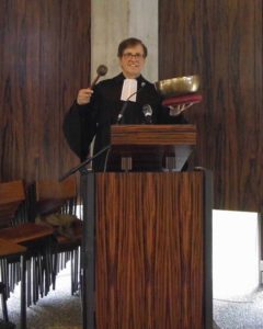 Pfarrer Monninger schlug bei der Predigt die Klangschale.
