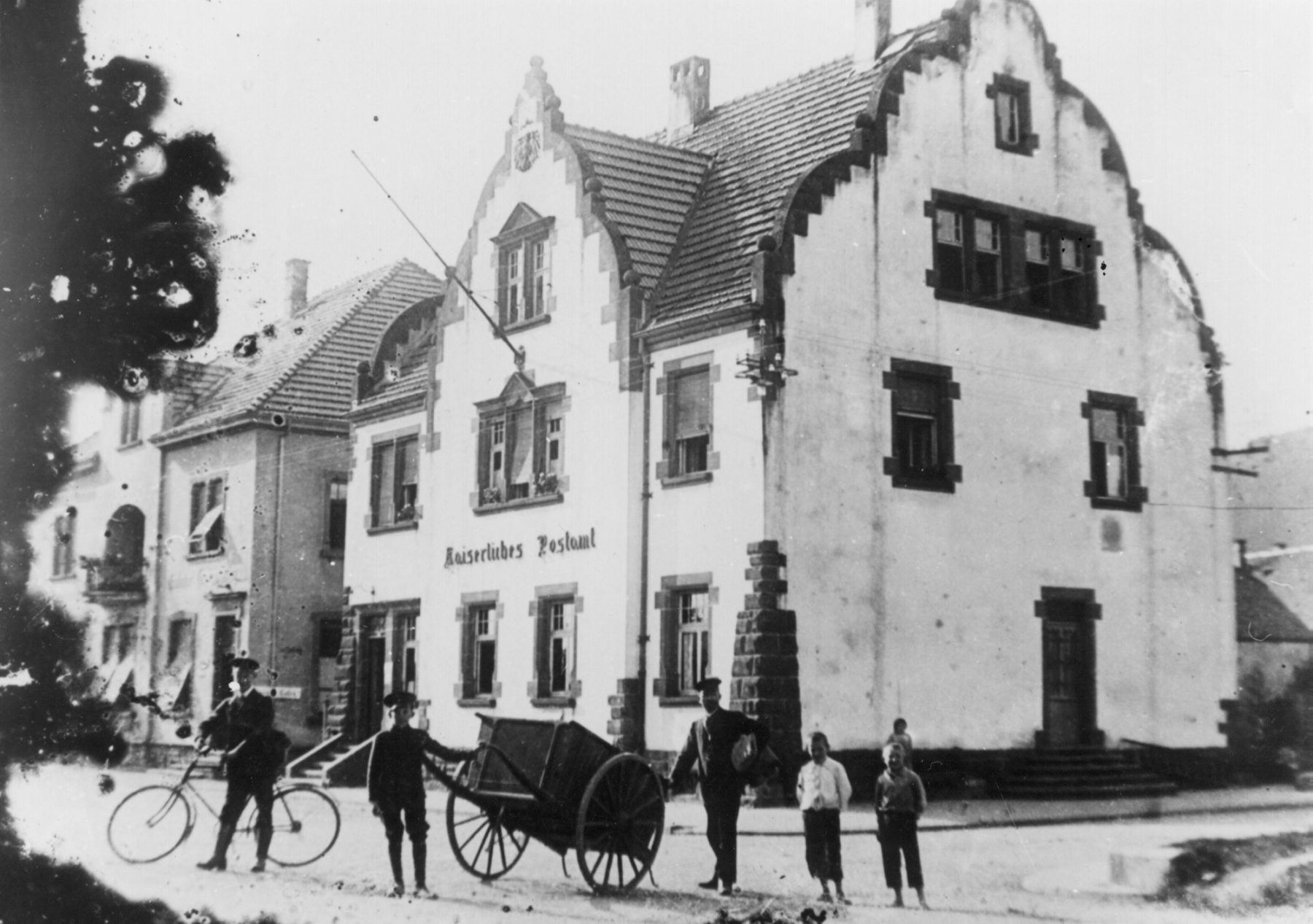 1892 zog die Zeller Posthalterei innerhalb der Hauptstraße um, vom älteren Fachwerkhaus in ein damals ganz modernes Gebäude (später Haus Nock, heute Reisebüro Oberfell). Das neue Haus im Stil des Historismus malte den Adler der Reichspost unübersehbar auf den hochragenden Giebel. Die schmucke Giebelspitze hat den späteren Umbau nicht überlebt. Freunde der Zeller Geschichte aber haben sie gerettet und am Gewerbekanal beim Haus Bären aufgestellt. Ab 1904 fährt dann von Biberach eine Nebenbahn ins Harmersbachtal. Die bis dahin von Pferden gezogene Postkutsche war damit Geschichte. Und die Post zieht erneut um, in ein eigenes neues Gebäude vis-à-vis vom neuen Bahnhof.