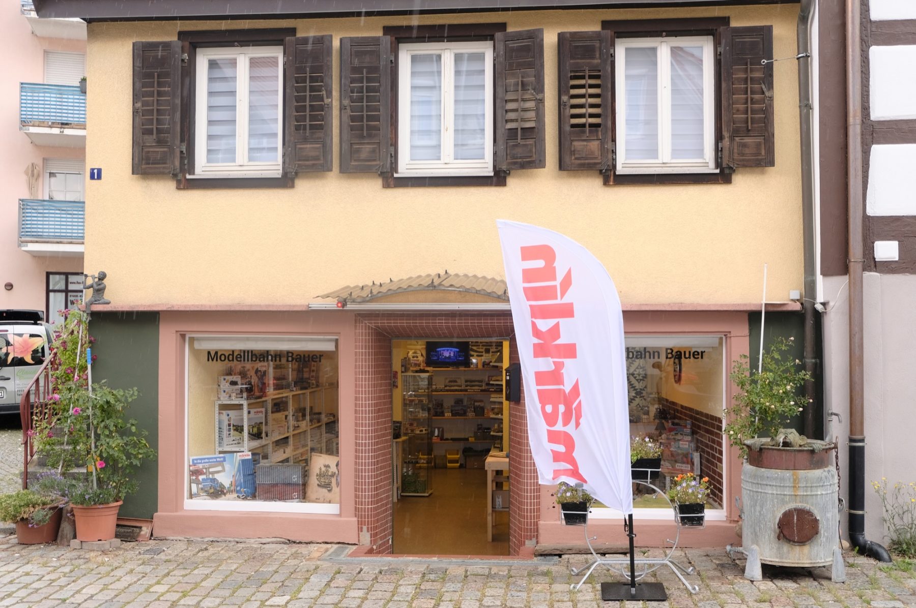 In der malerischen Hinteren Kirchstraße, nur ein paar Meter von der Hauptstraße entfernt, kann man Modellbahn Bauer nicht verfehlen. Große Fahnen vor dem Geschäft laden die Kunden nach der coronabedingten Zwangspause nun wieder ein, das Angebot zu erkunden. Das lässt keine Wünsche offen: Lokomotiven, Wagen, Schienen von Märklin, Fleischmann, Roco und vielen anderen von Spur Z bis Spur H0 – auch die Zwischenspuren. Zudem füllen Bausätze für einzelne Häuser oder ganze Szenerien sowie Zubehör die Regale. Weil Bauer alte Eisenbahnen ankauft, gibt es auch gebrauchte Modelle. Für die, die sich neu für das Hobby begeistern, finden sich Einsteigersets. Für Erwachsene genauso wie für Kinder ab drei Jahren. Wenn ein Kundenzug einmal zur Inspektion muss oder einen Defekt aufweist, bringt Bauer ihn mit fachkundiger Hand und Lötkolben wieder zum Laufen. Modellautos sind ebenfalls im Angebot.
