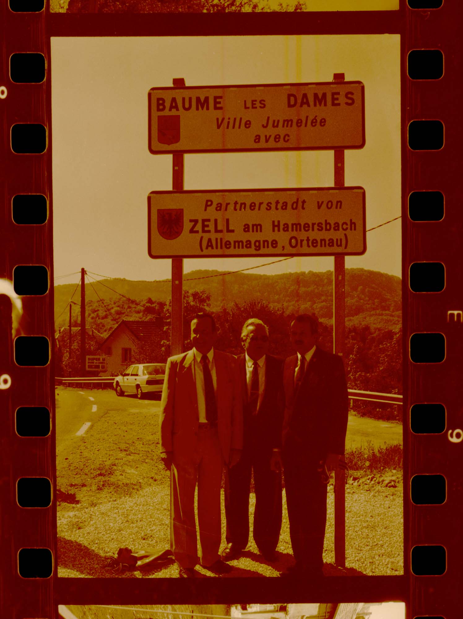 1990 haben die damaligen Bürgermeister Marc Pêtrement und Hans-Martin Moll die Verschwisterungsurkunden unterschrieben und die Städtepartnerschaft besiegelt. Feierlichkeiten in Baume-les-Dames und Zell unterstrichen die Verbindung. Eine Grenze, zwei Sprachen und 216 Kilometer Entfernung waren und sind kein Hindernis für eine Freundschaft.