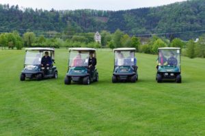 5. Station: Fahrt mit Elektro-Carts ins Golfgelände.