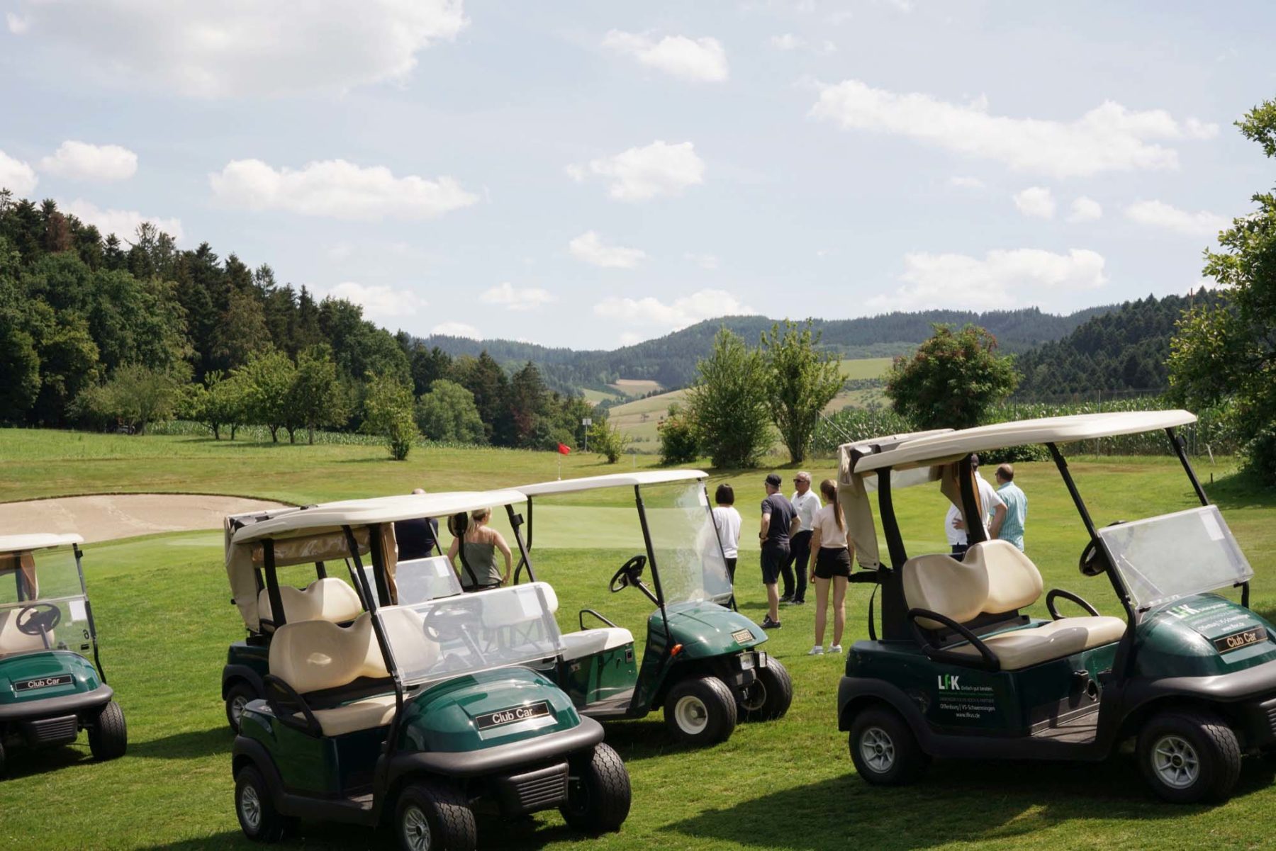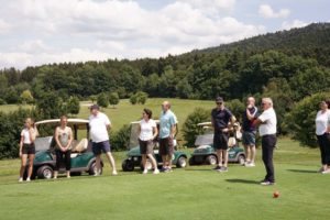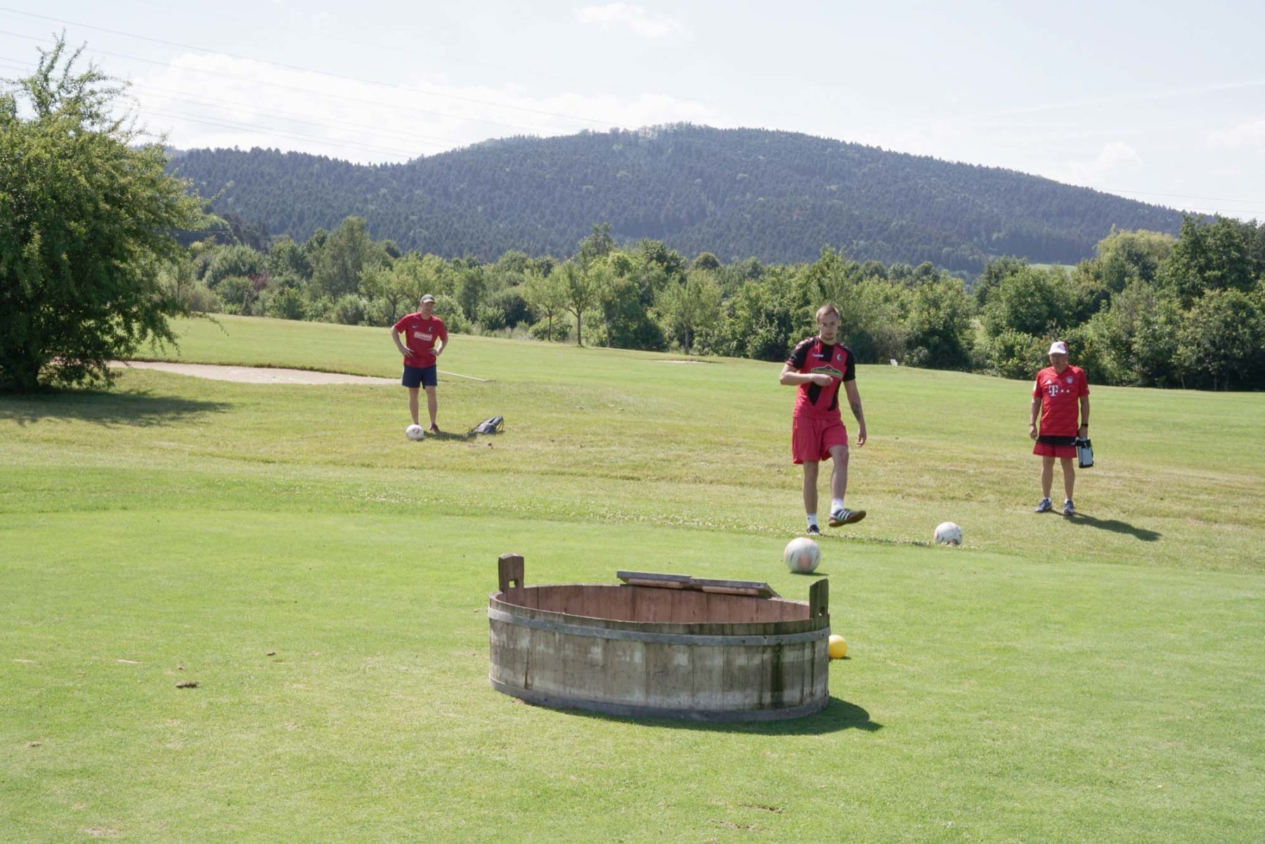 Bei strahlendem Sonnenschein gingen bereits um 10 Uhr morgens die ersten Teilnehmer des Fußballgolf-Events an den Start. In Zweier-Teams wurde auf vier regulären Spielbahnen des Golfplatzes der Wettbewerb ausgetragen. Aufgabe der Teams war es, die Fußbälle mit möglichst wenig Schüssen in neun eigens dafür konzipierte Löcher zu katapultieren. Mit 18 Teams war die Teilnehmerzahl eher gering. Dennoch hatten die angetretenen Spieler einen Heidenspaß an den witzigen »Fußballgolf-Toren«, die sich Sportwart Stefan Kirsch eigens für diesen Event hat einfallen lassen. Während die Siegerehrung noch in vollem Gange war, trafen bereits um 13 Uhr die ersten Teilnehmer zum Golferlebnistag ein.