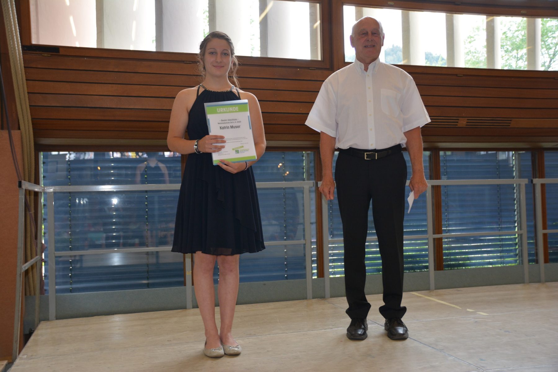 Katrin Muser wurde auch als erste Schülerin des Bildungszentrums mit dem von der AWO Zell a. H. gestifteten Sozialpreis ausgezeichnet. Der Vorsitzende des Ortsvereins, Heinz Engelhardt, versprach, die Auszeichnung alljährlich an eine Schülerin oder einen Schüler zu vergeben, die sich in besonderem Maß sozial engagieren, etwa nachhaltig für den Zusammenhalt einer Klasse sorgen. Katrin Muser habe dies in ihrem Amt als Klassensprecherin bewiesen, hob Engelhardt hervor.