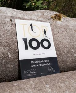 Manfred Lehmann Innenausbau gehört zu den innovativsten mittelständischen Unternehmen Deutschlands und darf nun das Siegel »TOP 100« tragen. Beim diesjährigen Wettbewerb, der inzwischen zum 27. Mal ausgetragen wurde, konnte das Unternehmen seine besondere Innovationskraft und seine überdurchschnittlichen Innovationserfolge unter Beweis stellen. Mit rund 60 Mitarbeitern und einem modernen Produktionsbetrieb steht Manfred Lehmann Innenausbau für Konzeption, Konstruktion, Ausführung und Projektmanagement auf höchstem Niveau und ist sowohl regional als auch international sehr erfolgreich.
