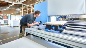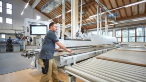 Erster wichtiger Schritt des Modernisierungsprozesses war die Installation einer vollautomatischen Säge/- Lageranlage die den Startschuss für die komplette Umstrukturierung des Maschinenparks hin zur Hochleistungsmanufaktur gab. Ihr folgten unter anderen ein neues 5-Achs Bearbeitungszentrum und eine Kantenanleimmaschine mit automatischer Rückführung. Dabei wurde der Fußboden komplett erneuert und eine LED-Beleuchtung installiert, um optimale Arbeitsbedingungen zu schaffen. Dies wird auch durch die neue Absauganlage gewährleistet, die stündlich 60.0000 Kubikmeter Luft austauscht und so für ein sauberes Arbeitsklima in der Werkshalle sorgt.