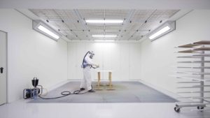 Durch einen neuen Logistikraum mit Laderampen, einem Lastenaufzug und Magazinräume für Beschläge und Montagewerkzeug ist jetzt auch für einen strikteren und flüssigeren Materialfluss gesorgt. Ein weiteres Herzstück von Manfred Lehmann Innenausbau ist der Oberflächenbereich. Die Lackieranlage wurde vom Marktführer konzipiert und befindet sich nun im Kellergeschoss. Der Lackierraum wurde mit einer Filteranlage und mit Wärmerückgewinnung ausgestattet und ermöglicht das Lackieren von hochveredelten Oberflächen.