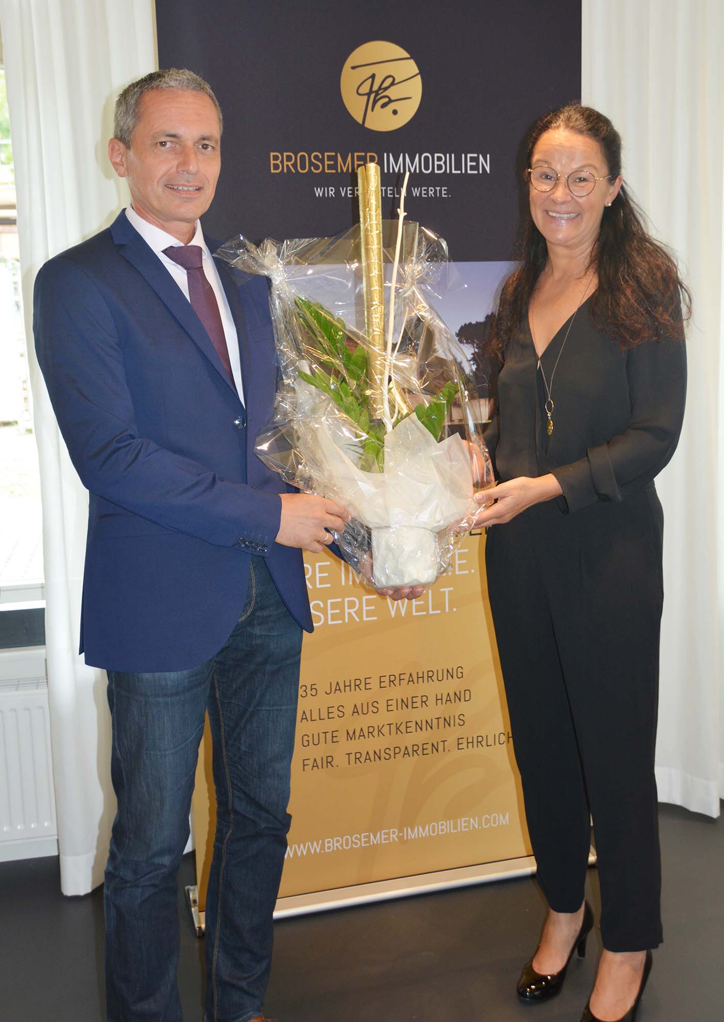 Am Freitag gratulierte Bürgermeister Günter Pfundstein Immobilien-Betriebswirtin Petra Brosemer zur Eröffnung ihres eigenen Geschäftes und wünschte ihr für die Zukunft namens der Stadt Zell viel Erfolg.
