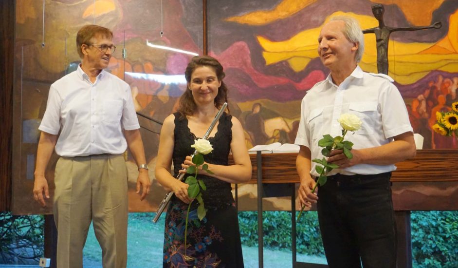Pfarrer Monninger dankte den beiden Musikern mit einer weißen Rose. Von den Konzertbesuchern hörte man begeisterte Kommentare. Allenthalben war die Freude darüber zu spüren, dass es wieder Konzerte in der Zeller evang. Kirche gibt. – Die zweite Sommermusik findet am 5. August 2020 statt.