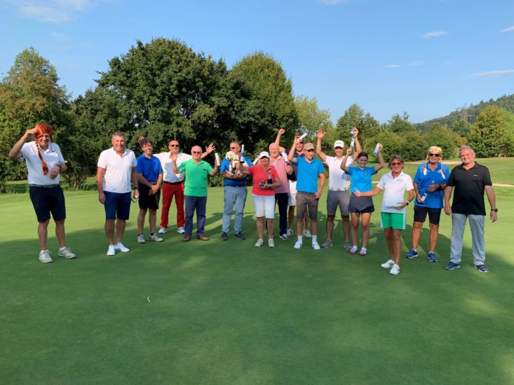 Präsident Dr. Volker Hamann persönlich nahm die Preisverleihung vor und kündigte zu guter Letzt noch eine Überraschung an: Es gab eine weitere Sonderwertung, die zwar einen eher spaßigen Hintergrund hatte, aber dennoch mit Preisen dotiert war. Anlässlich dieses Turniers kamen nämlich zum ersten Mal die neuen »Gentleman«-Figuren zum Einsatz. Das heißt Frauen, die ihren Ball auf der Bahn nicht weiter als bis zum »Gentleman« schlugen, wurden mit den Männern gleichgestellt, die eine »Lady« schlugen. Bei den Herren ist ja im Golfsport seit jeher der weiter vorne liegende Damenabschlag das Ziel, den es mit dem ersten Schlag mindestens zu erreichen gilt. Schaffen sie das nicht, spricht man von einer »Lady«. Traditionell ist dann eine Runde Getränke für die Mitspieler im Clubhaus fällig.