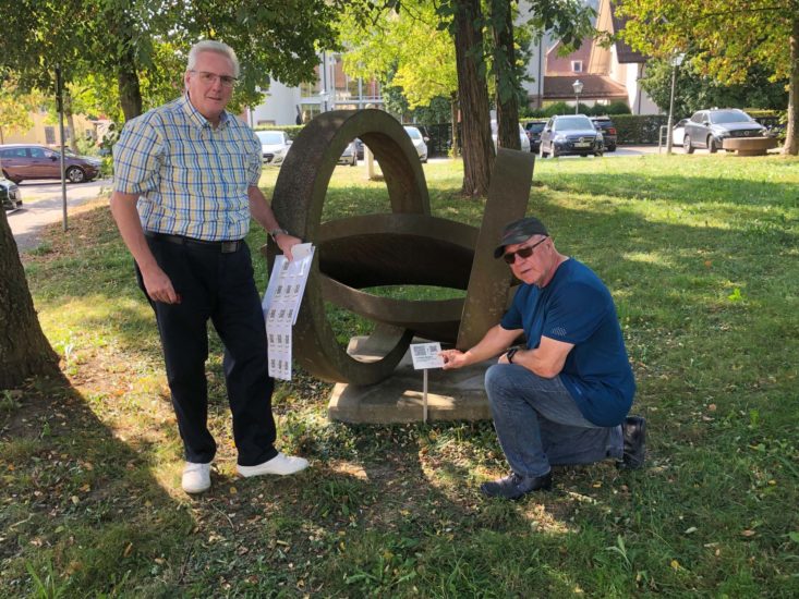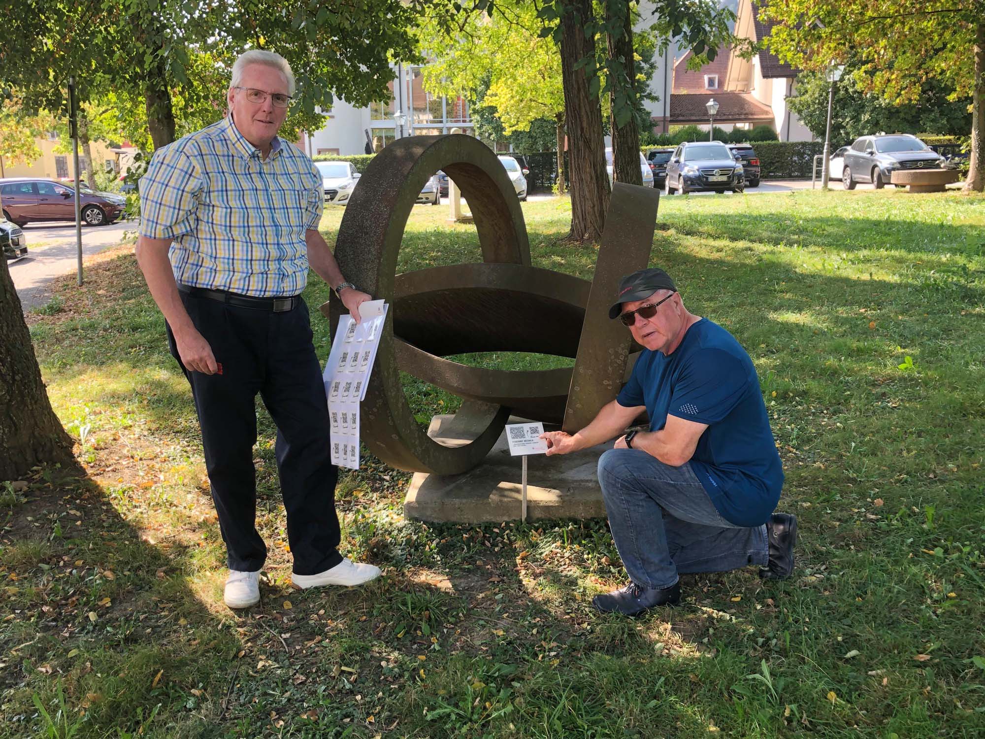 »Vielen Besucher denken, die Skulpturen haben ja schon einen QR-Code«, erzählt Wolfgang Hilzensauer. »Sie versuchen die Markierung mit dem Handy zu scannen und wundern sich, dass es nicht klappt.« Schuld ist nicht der QR-Scanner, sondern ein Verwechslung: »Sie haben bisher unser Logo gescannt. Das weist in der Tat Ähnlichkeiten mit einem QR-Code auf.« Das wird sich nun ändern, denn die Skulpturen erhalten echte, lesbare Codes. »Die Maßnahmen von Corona haben uns darauf gebracht«, erläutert Hilzensauer. Mit dem QR-Code wolle der Kunstwege-Förderverein kunstinteressierten Bürgern neben geplanten Führungen auch die Möglichkeit geben den Skulpturenweg allein zu begehen und sich direkt an den Skulpturen zu beauskunften.